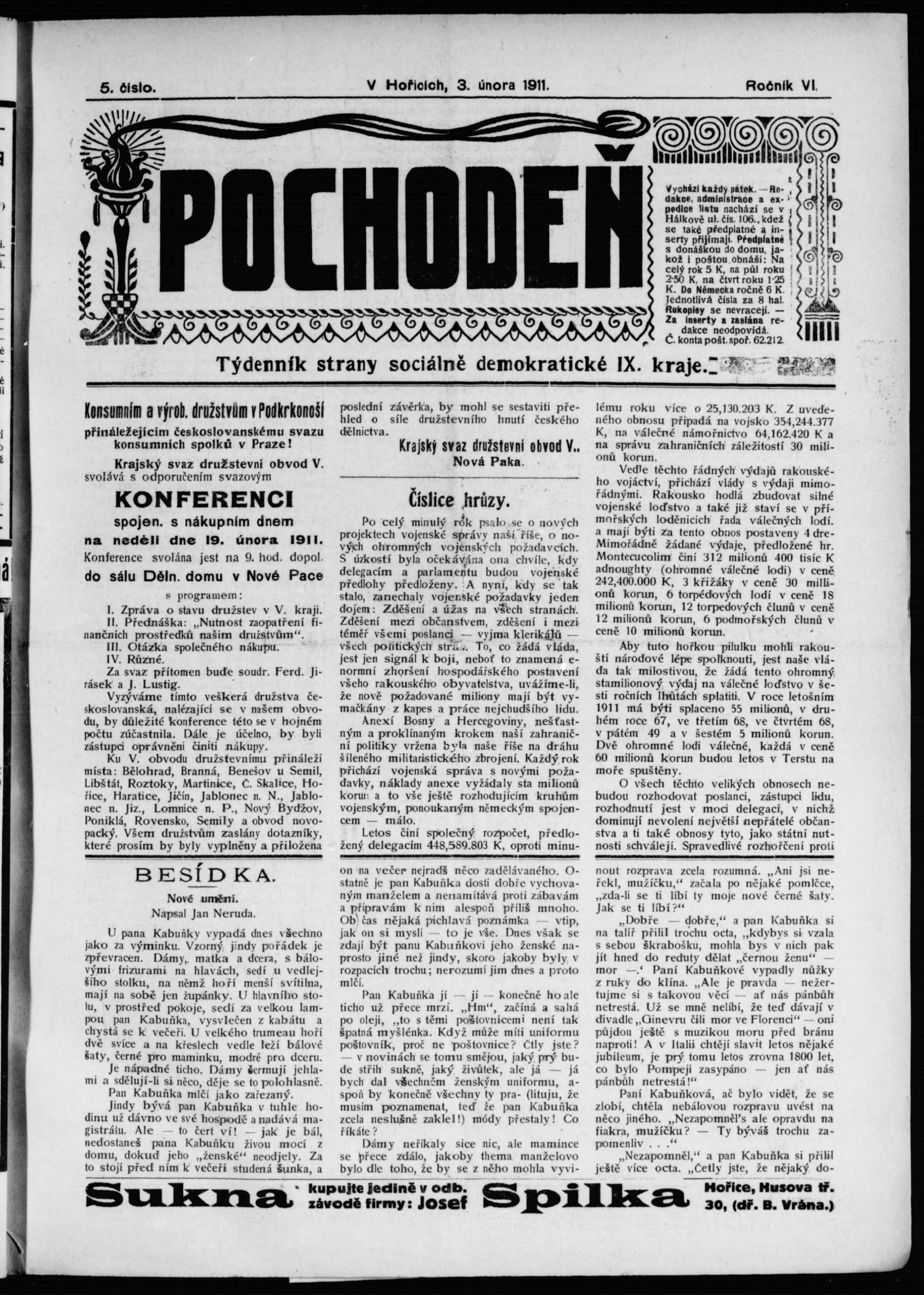 * Datum vydání výtisku: 3.2.1911 Číslo výtisku: 5
