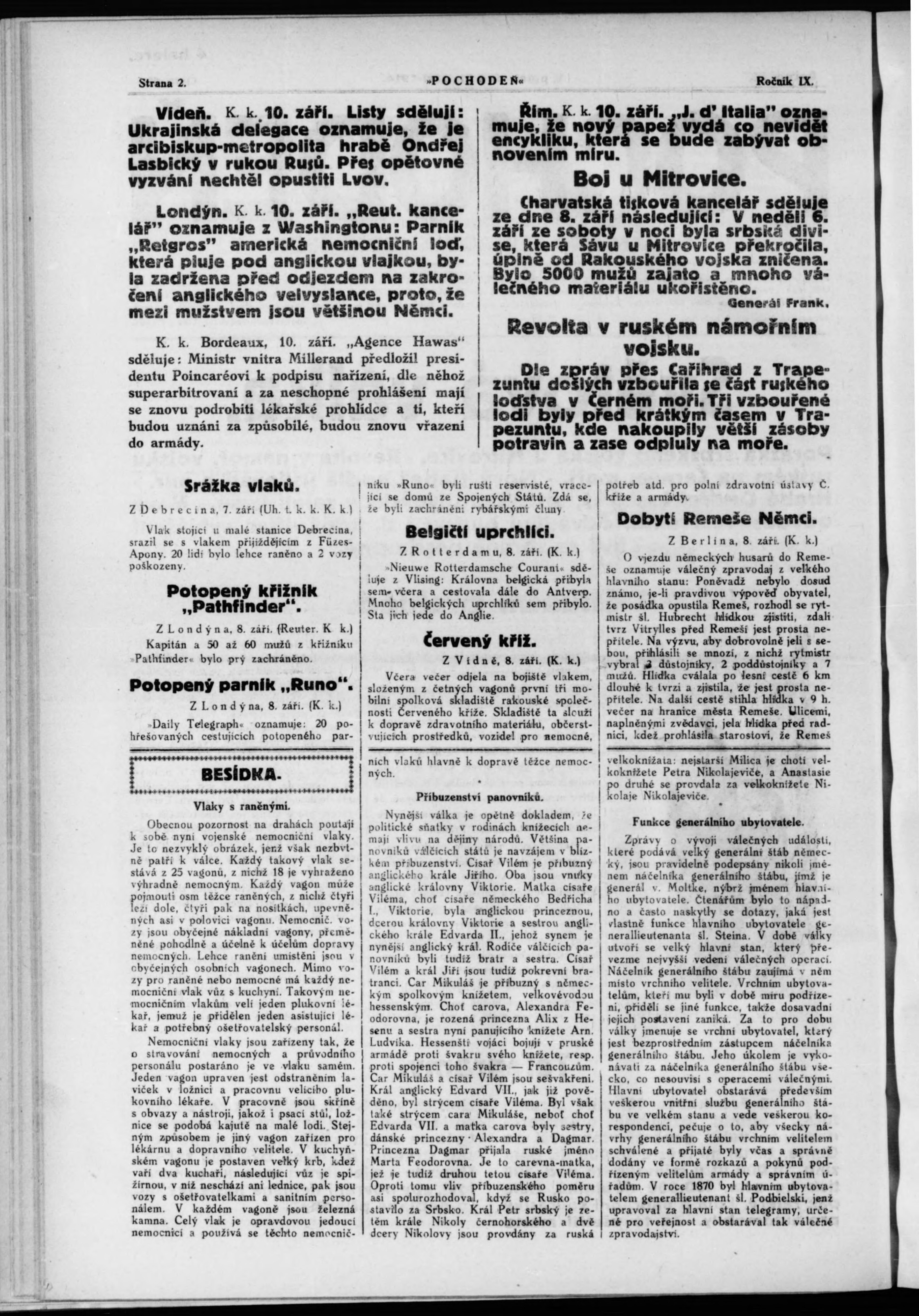 * Datum vydání výtisku: 11.9.1914 Číslo výtisku: 62