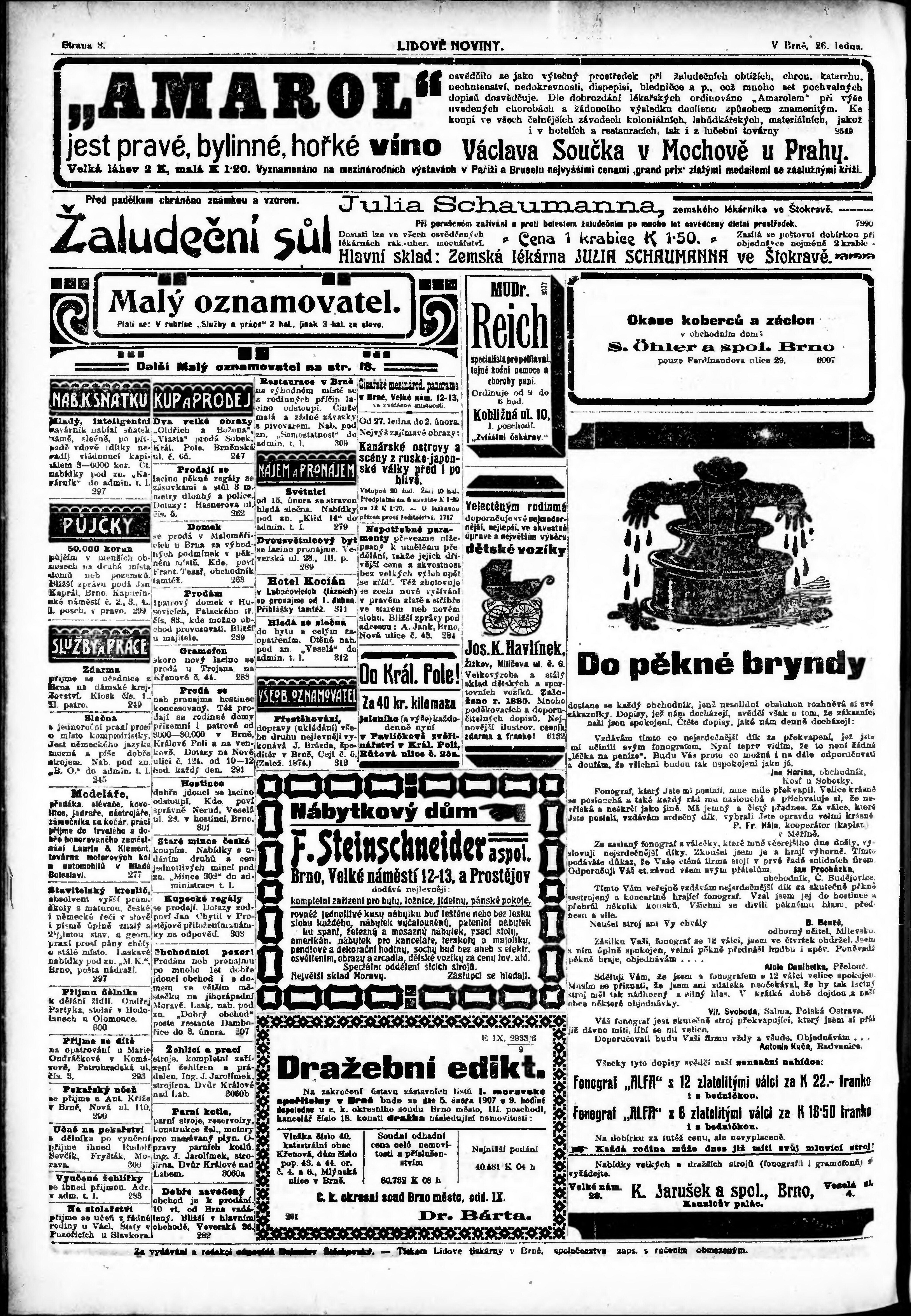 * Datum vydání výtisku: 26.1.1907 Číslo výtisku: 26 Poznámky k výtisku: večerní vydání;