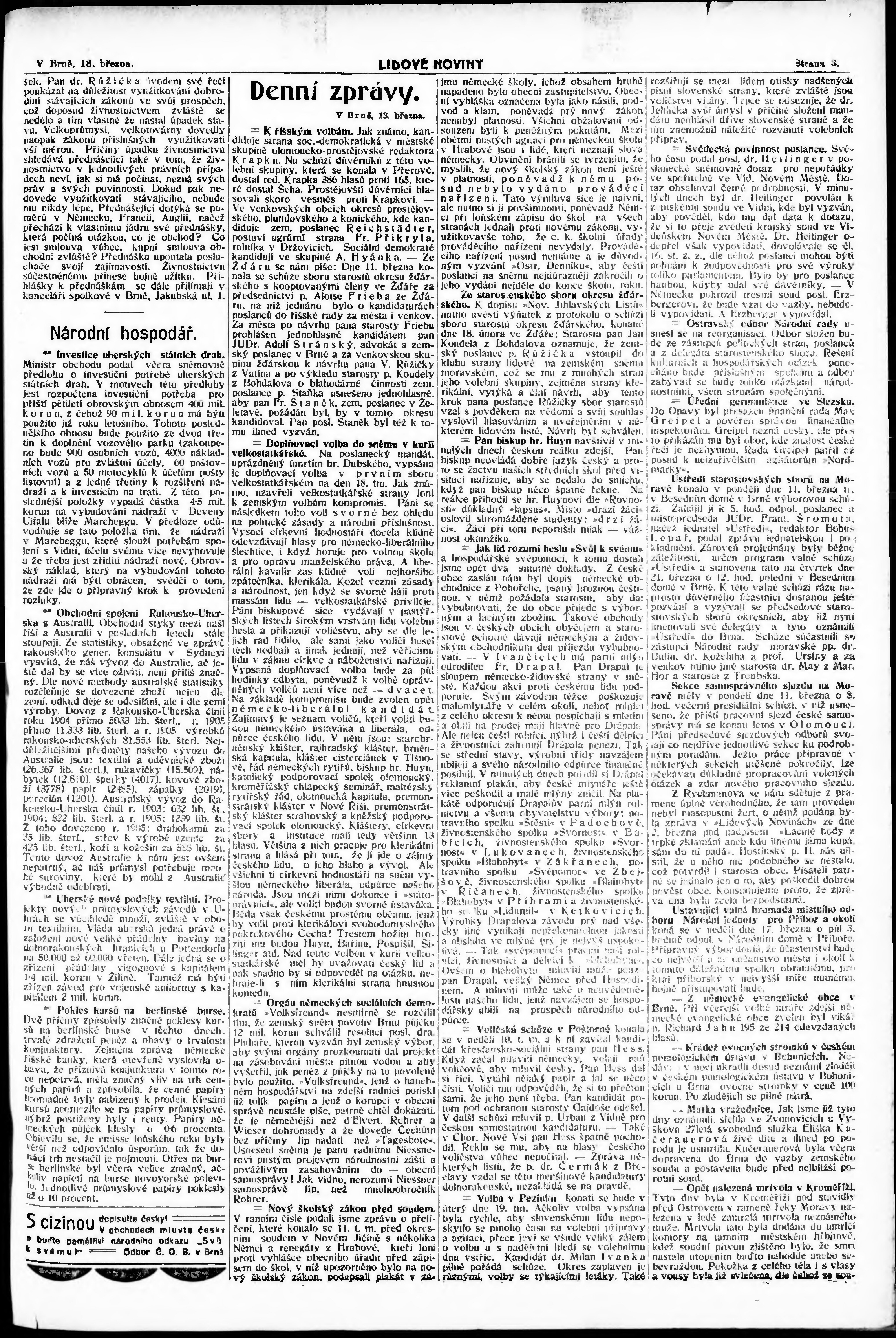 * Datum vydání výtisku: 13.3.1907 Číslo výtisku: 72 Poznámky k výtisku: večerní vydání;