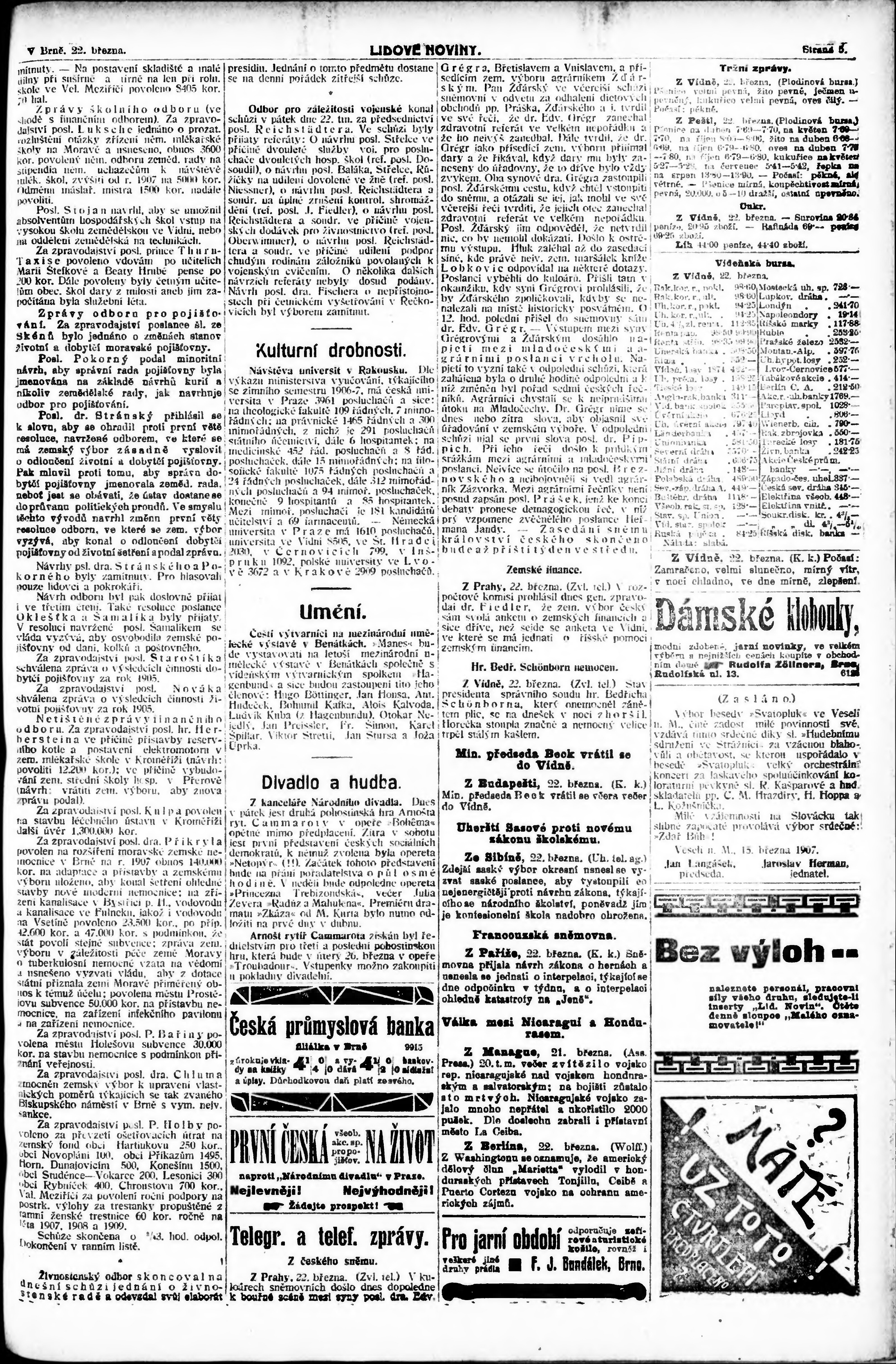 * Datum vydání výtisku: 22.3.1907 Číslo výtisku: 81 Poznámky k výtisku: večerní vydání;