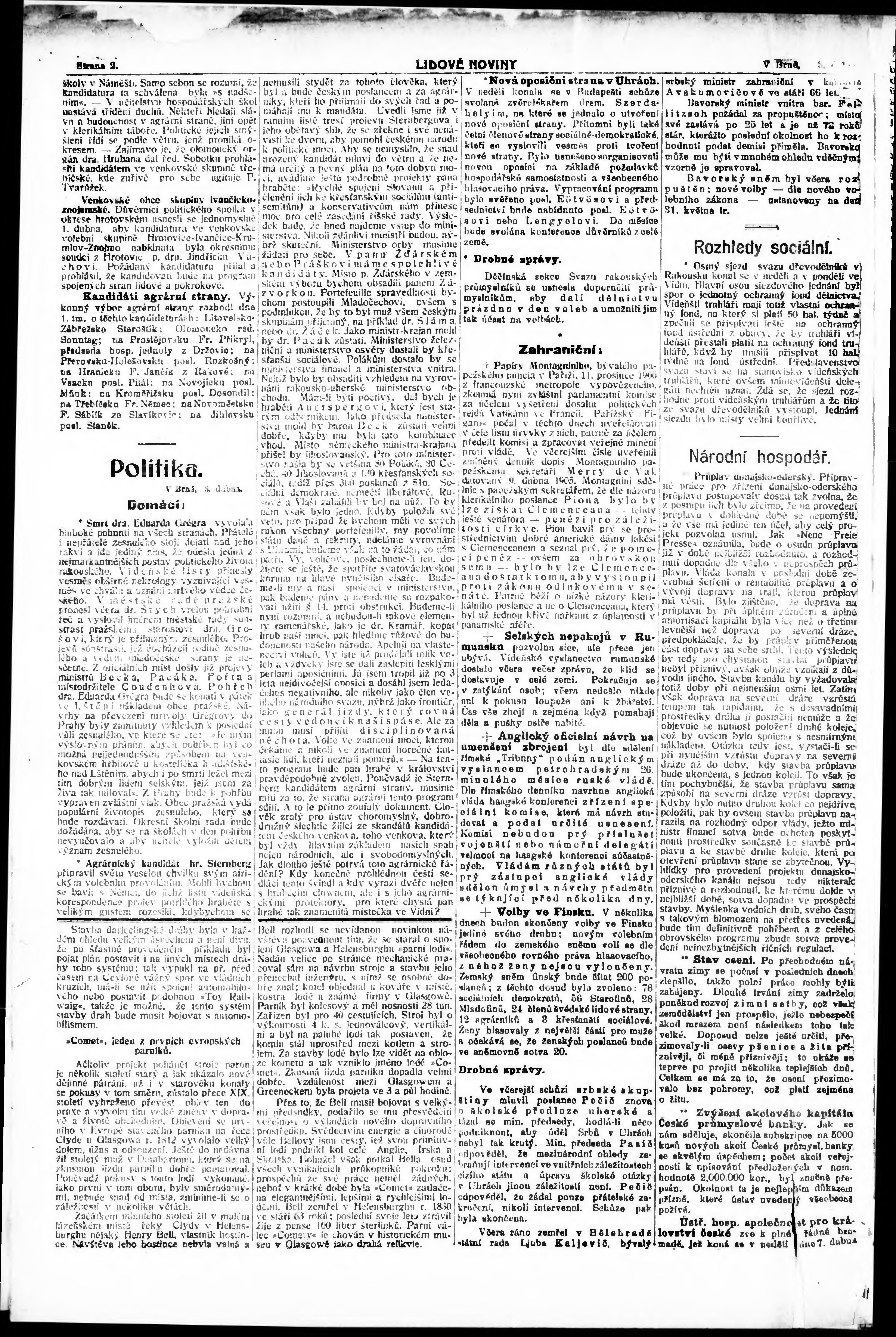 * Datum vydání výtisku: 3.4.1907 Číslo výtisku: 91 Poznámky k výtisku: večerní vydání;