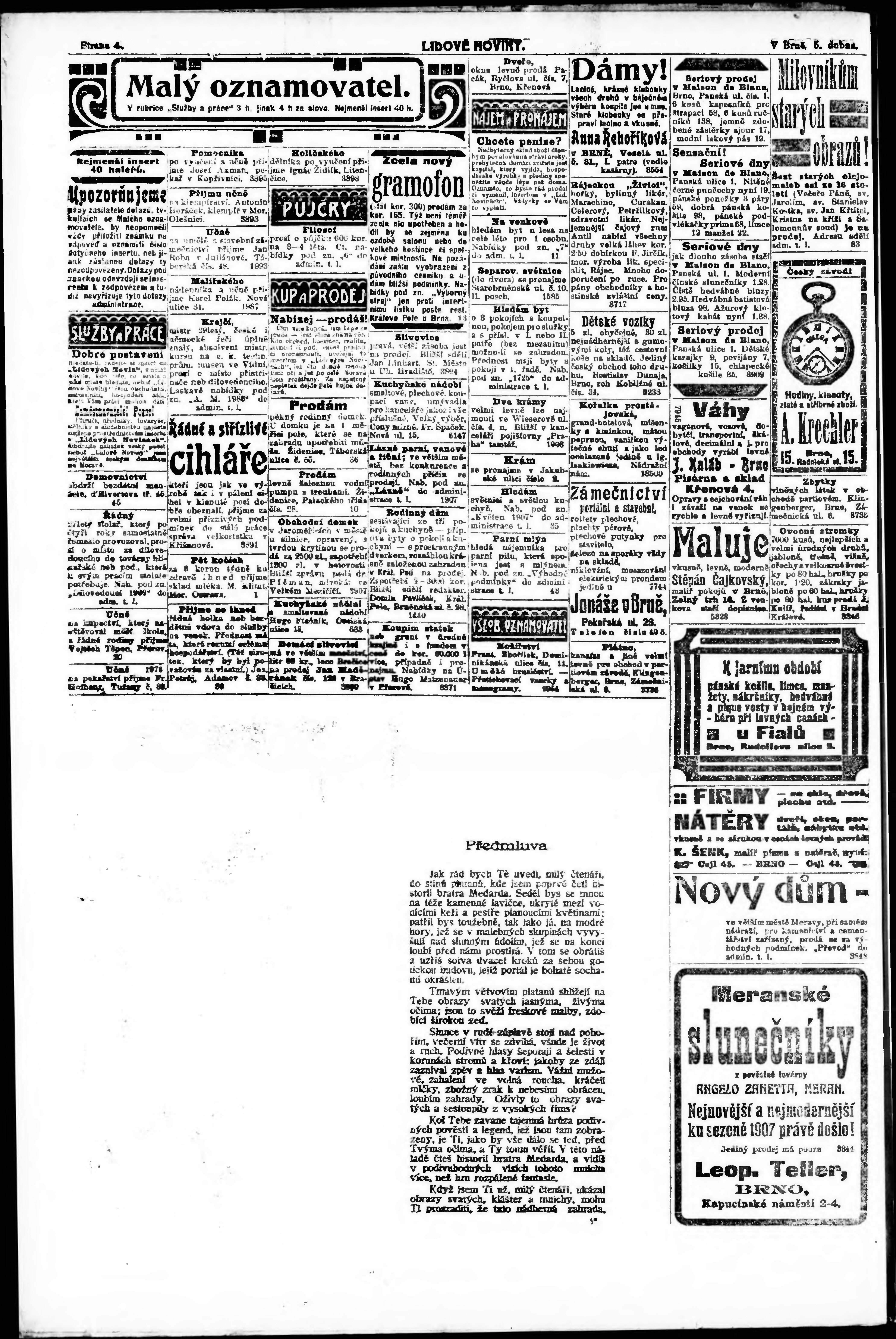 * Datum vydání výtisku: 5.4.1907 Číslo výtisku: 93 Poznámky k výtisku: ranní vydání;
