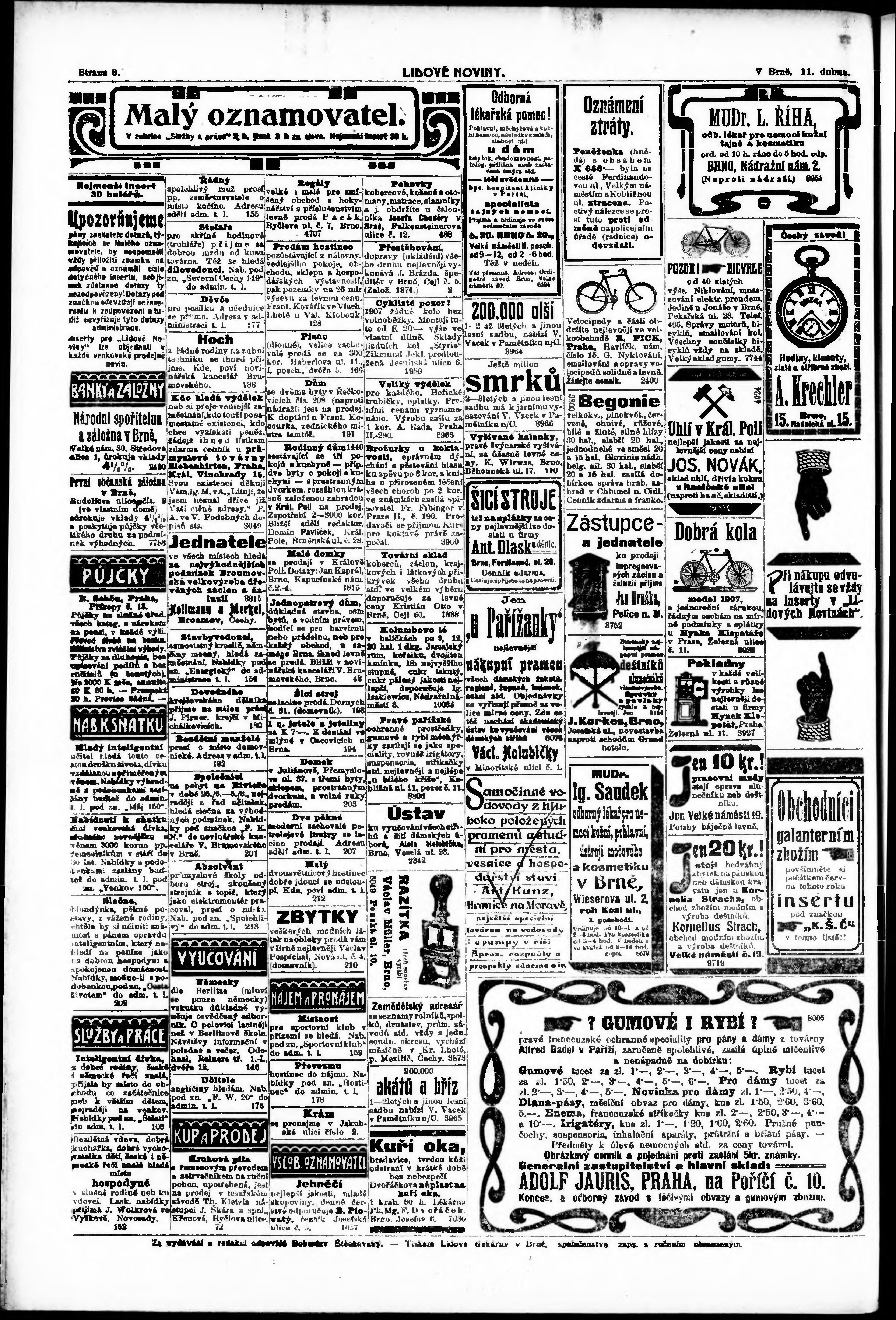 * Datum vydání výtisku: 11.4.1907 Číslo výtisku: 99 Poznámky k výtisku: večerní vydání;