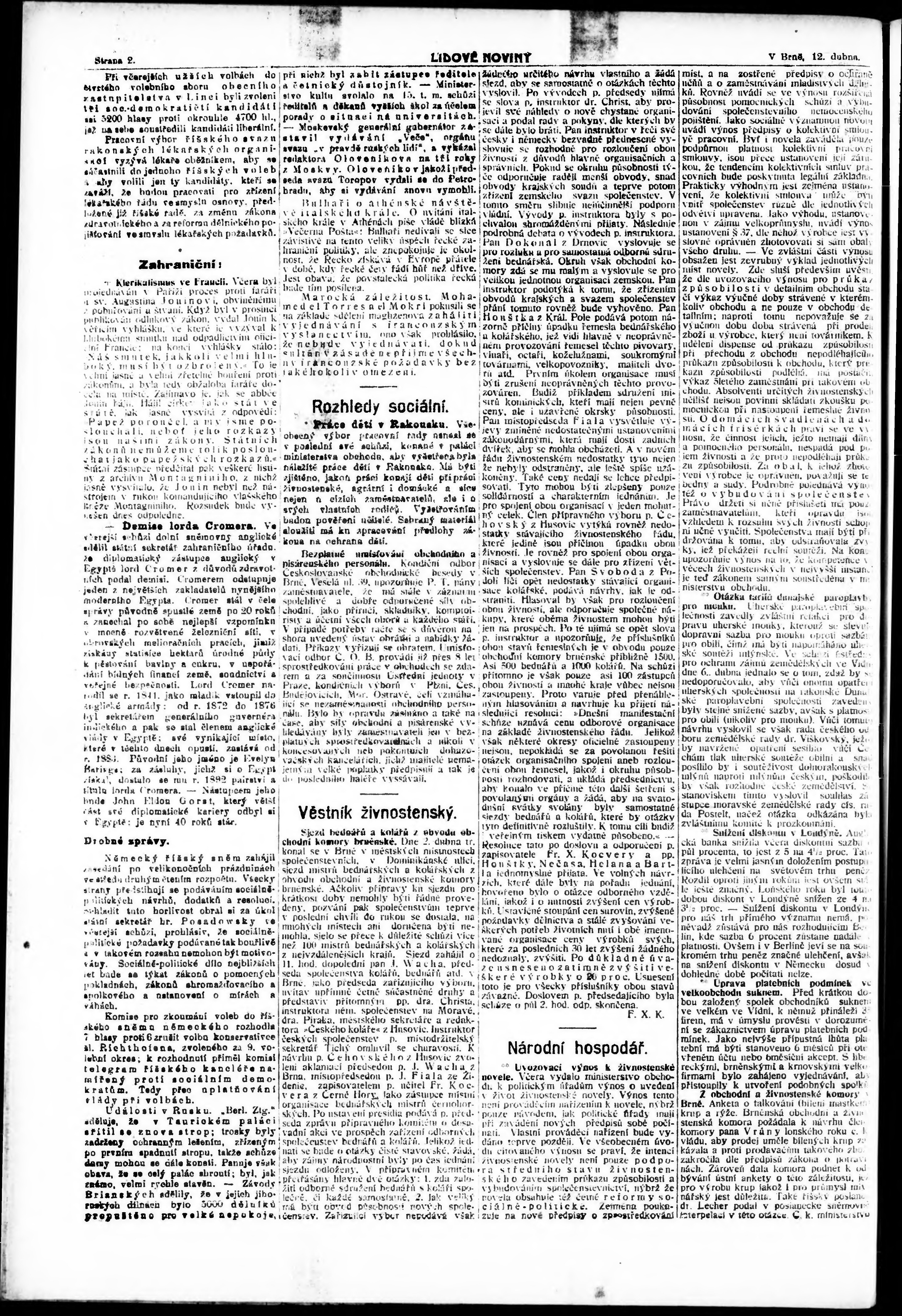 * Datum vydání výtisku: 12.4.1907 Číslo výtisku: 100 Poznámky k výtisku: večerní vydání;