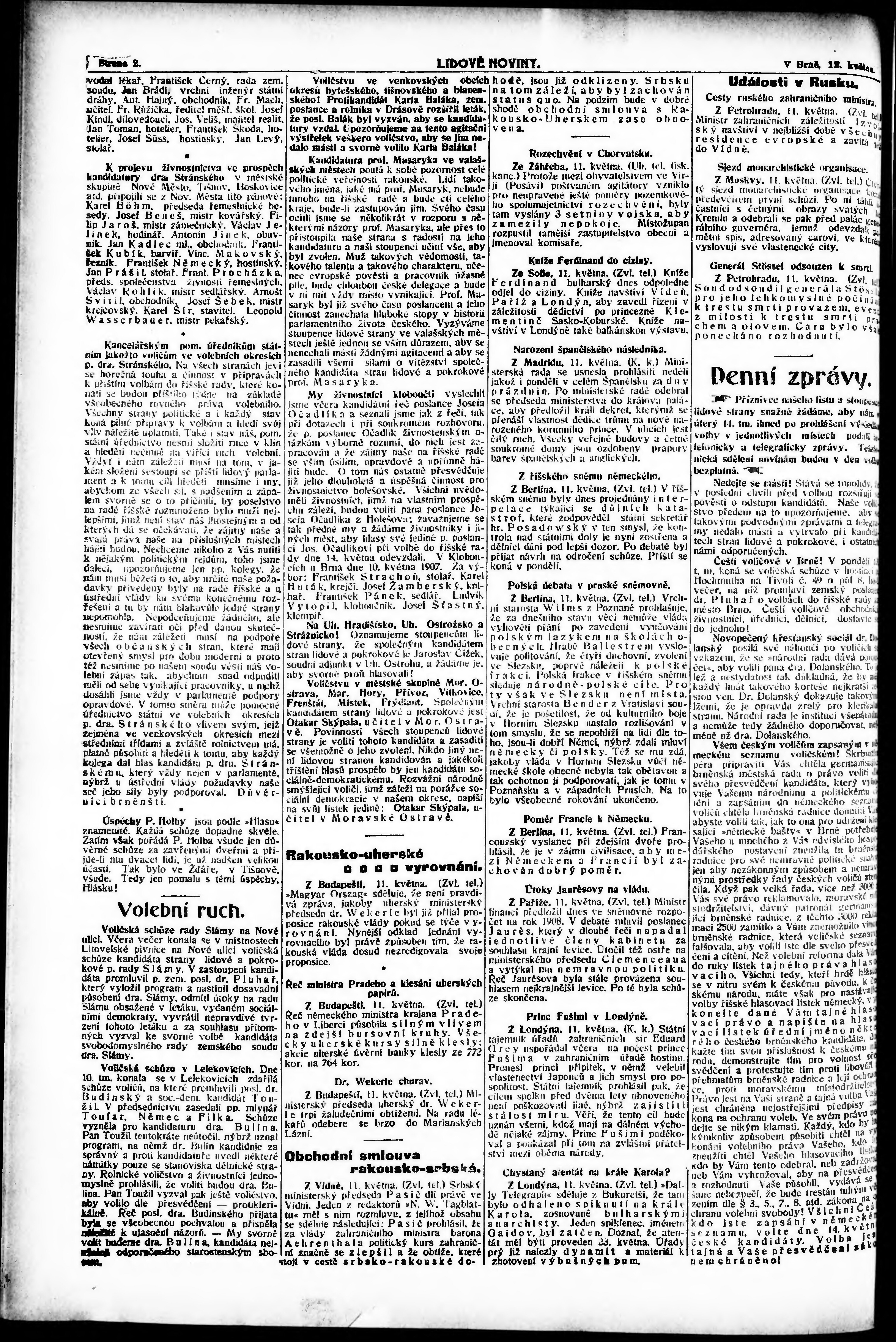 * Datum vydání výtisku: 12.5.1907 Číslo výtisku: 130 Poznámky k výtisku: ranní vydání;