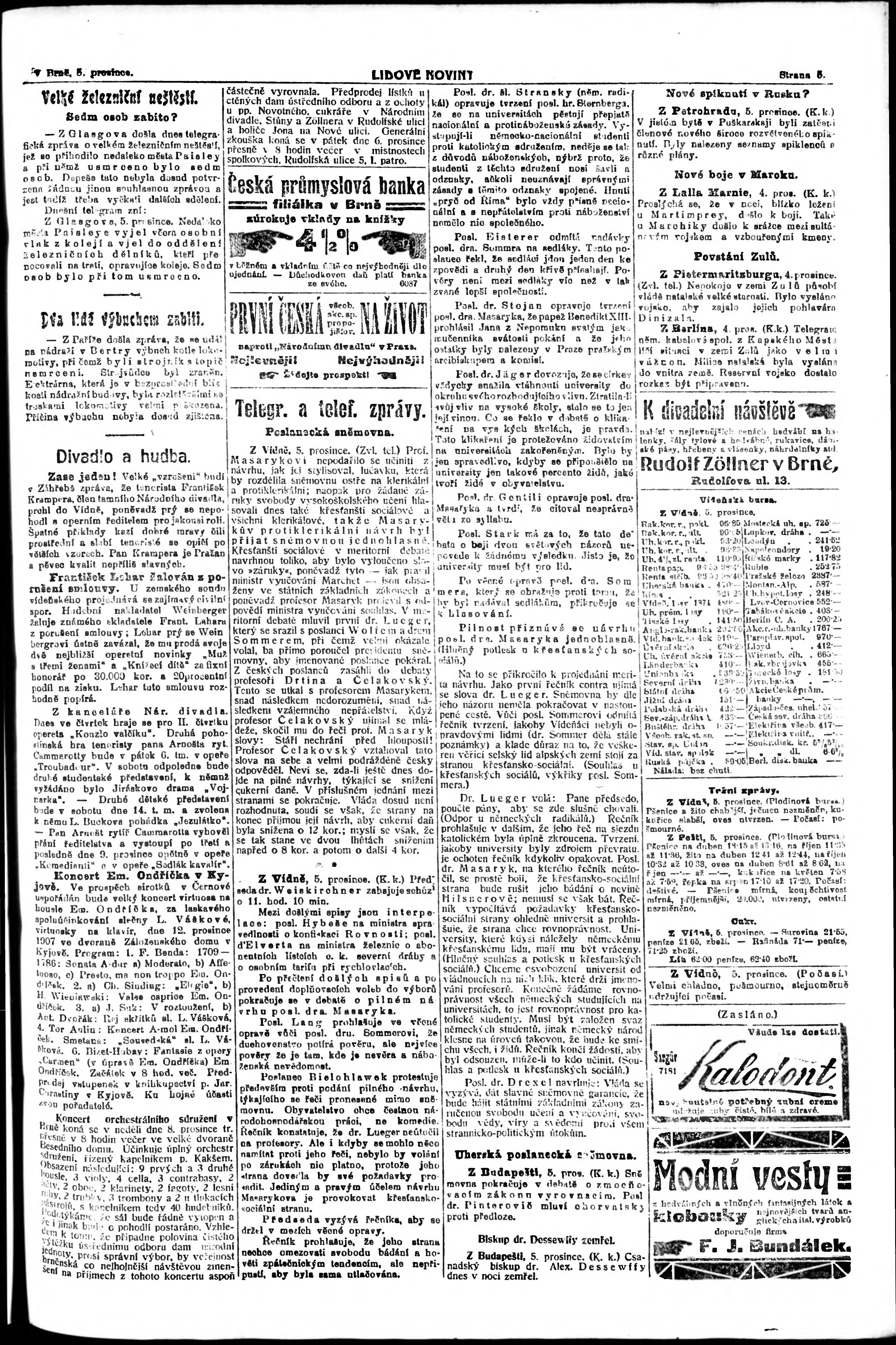 * Datum vydání výtisku: 5.12.1907 Číslo výtisku: 336 Poznámky k výtisku: večerní vydání;