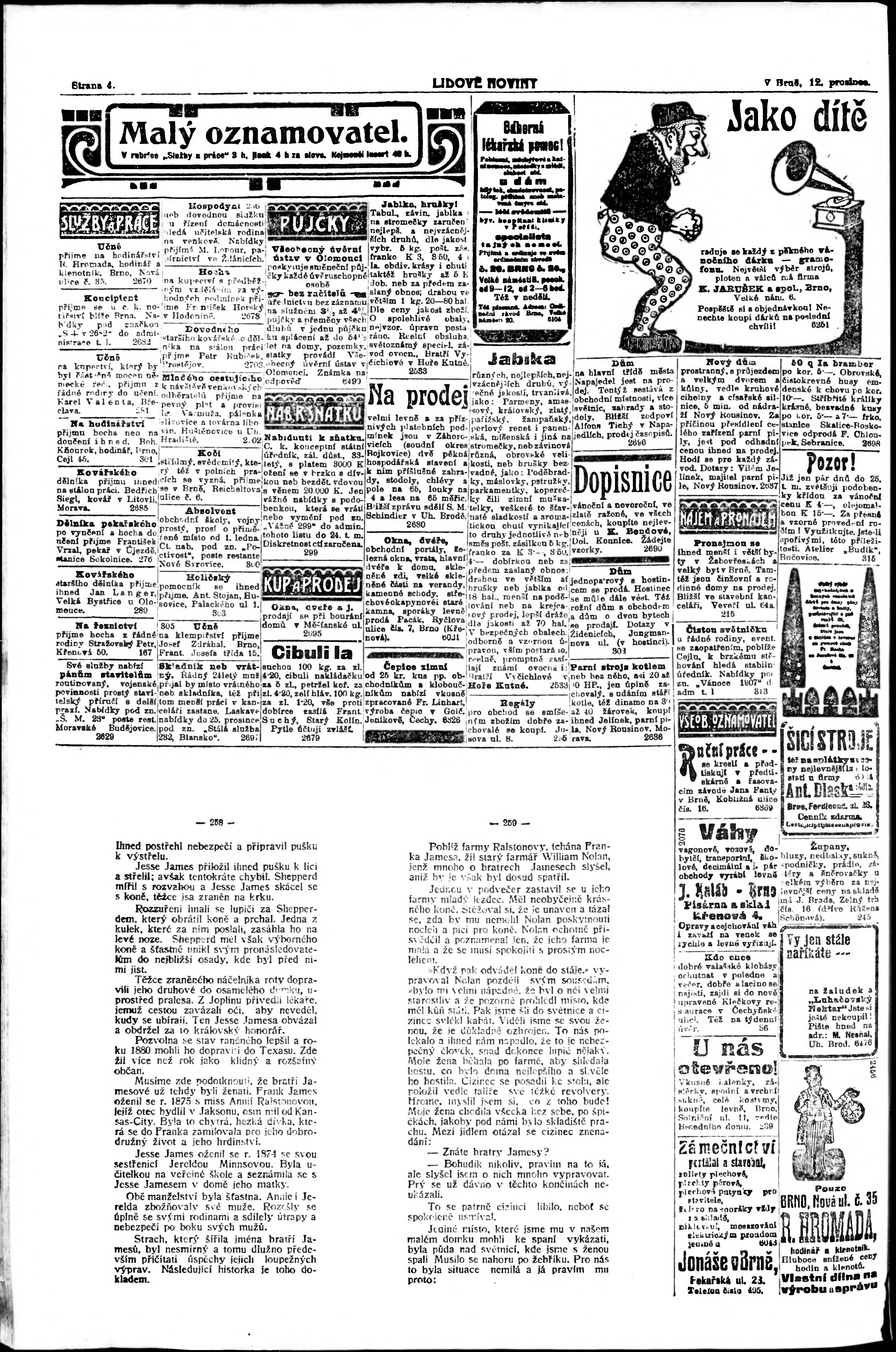 * Datum vydání výtisku: 12.12.1907 Číslo výtisku: 343 Poznámky k výtisku: ranní vydání;