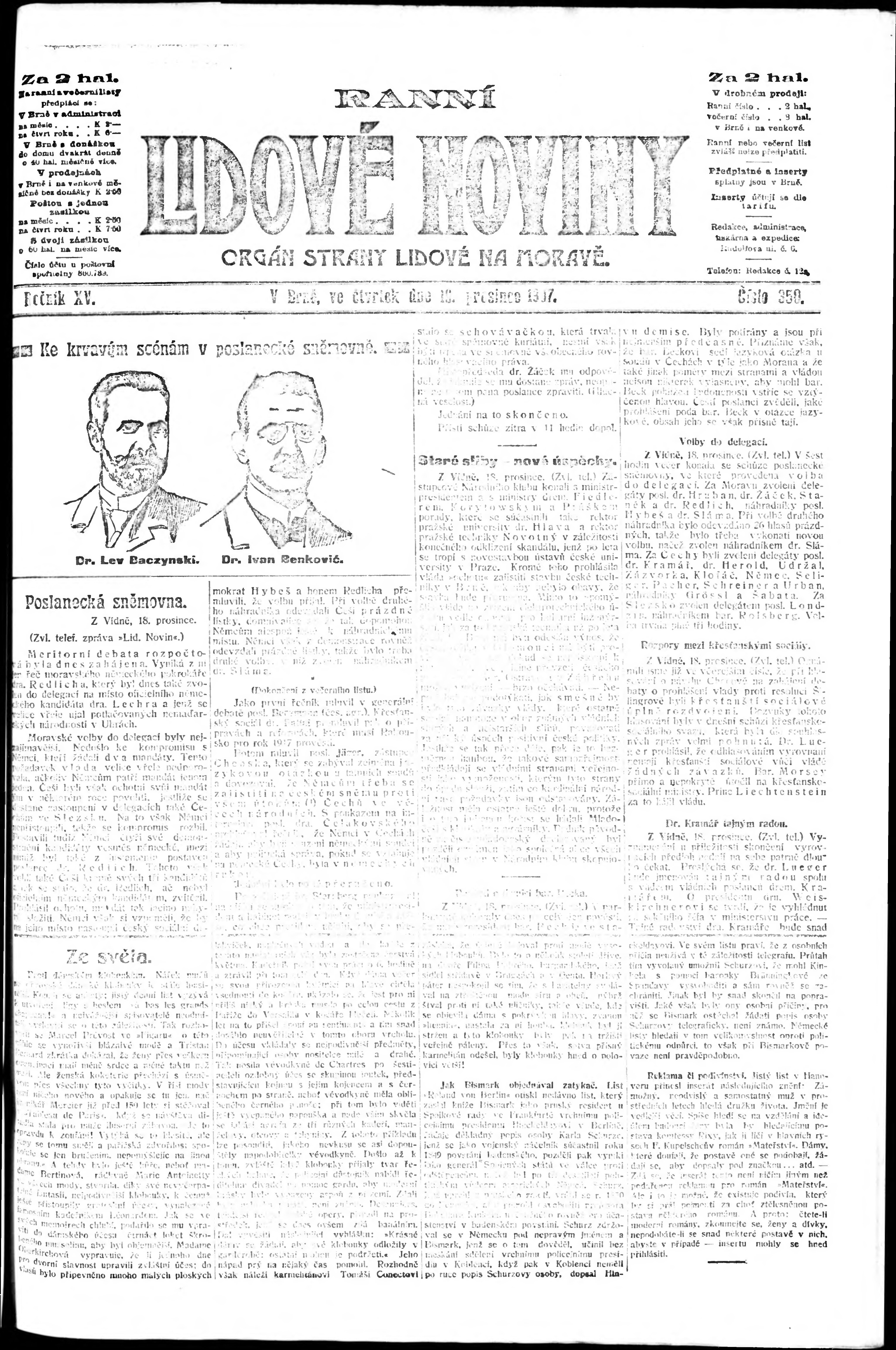 * Datum vydání výtisku: 19.12.1907 Číslo výtisku: 350 Poznámky k výtisku: ranní vydání;