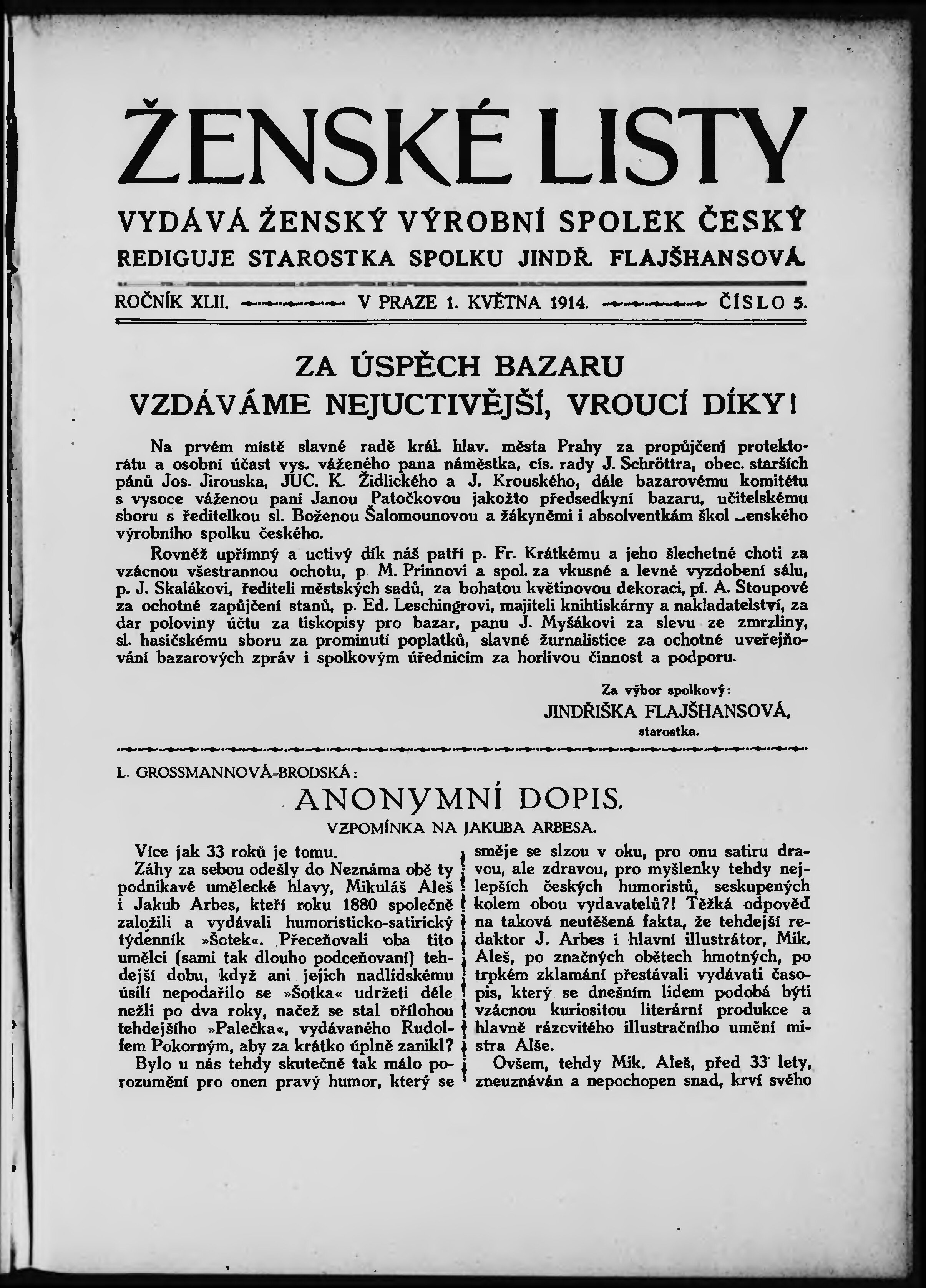 * Datum vydání výtisku: 1.5.1914 Číslo výtisku: 5
