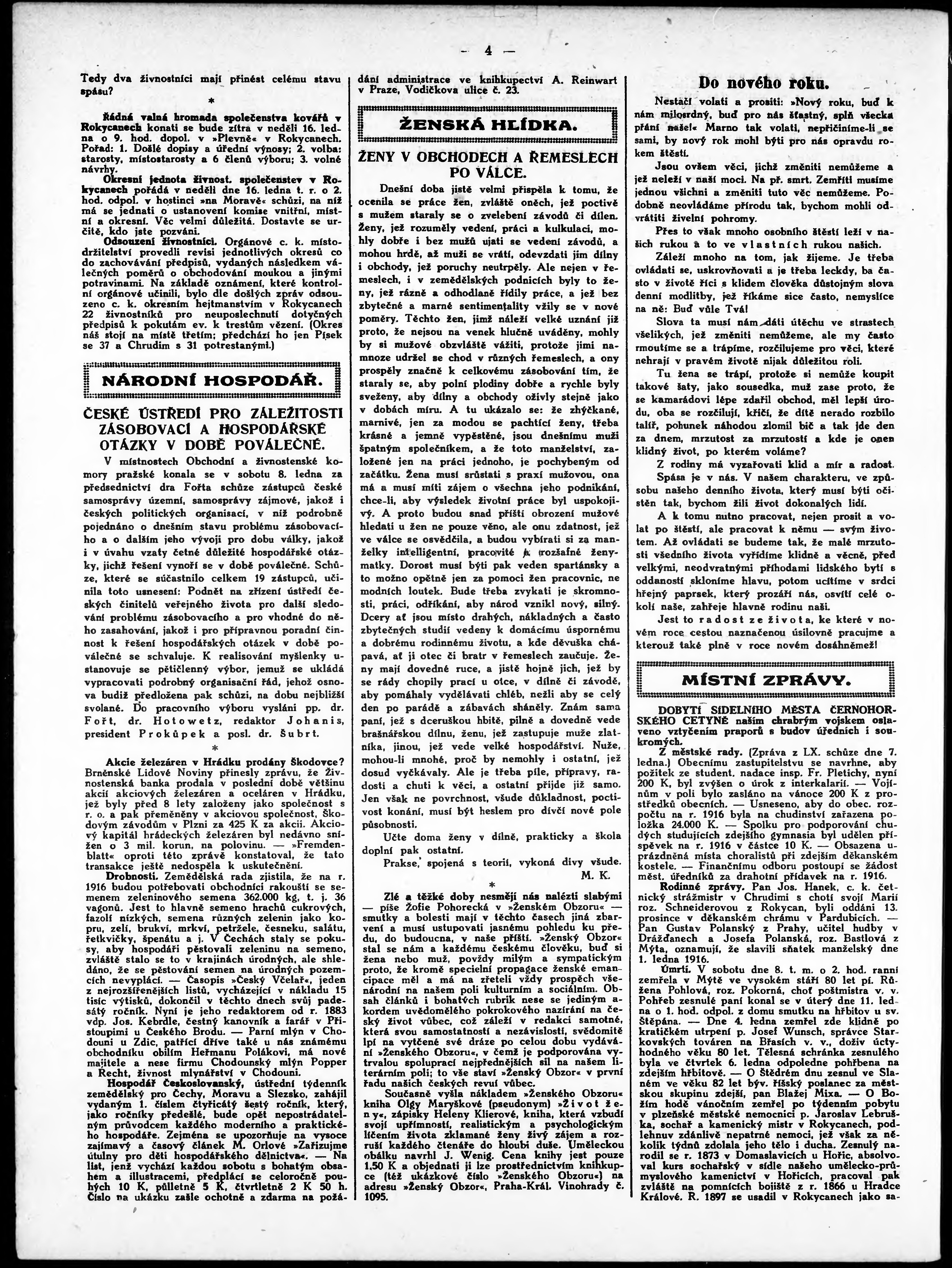* Datum vydání výtisku: 15.1.1916 Číslo výtisku: 1