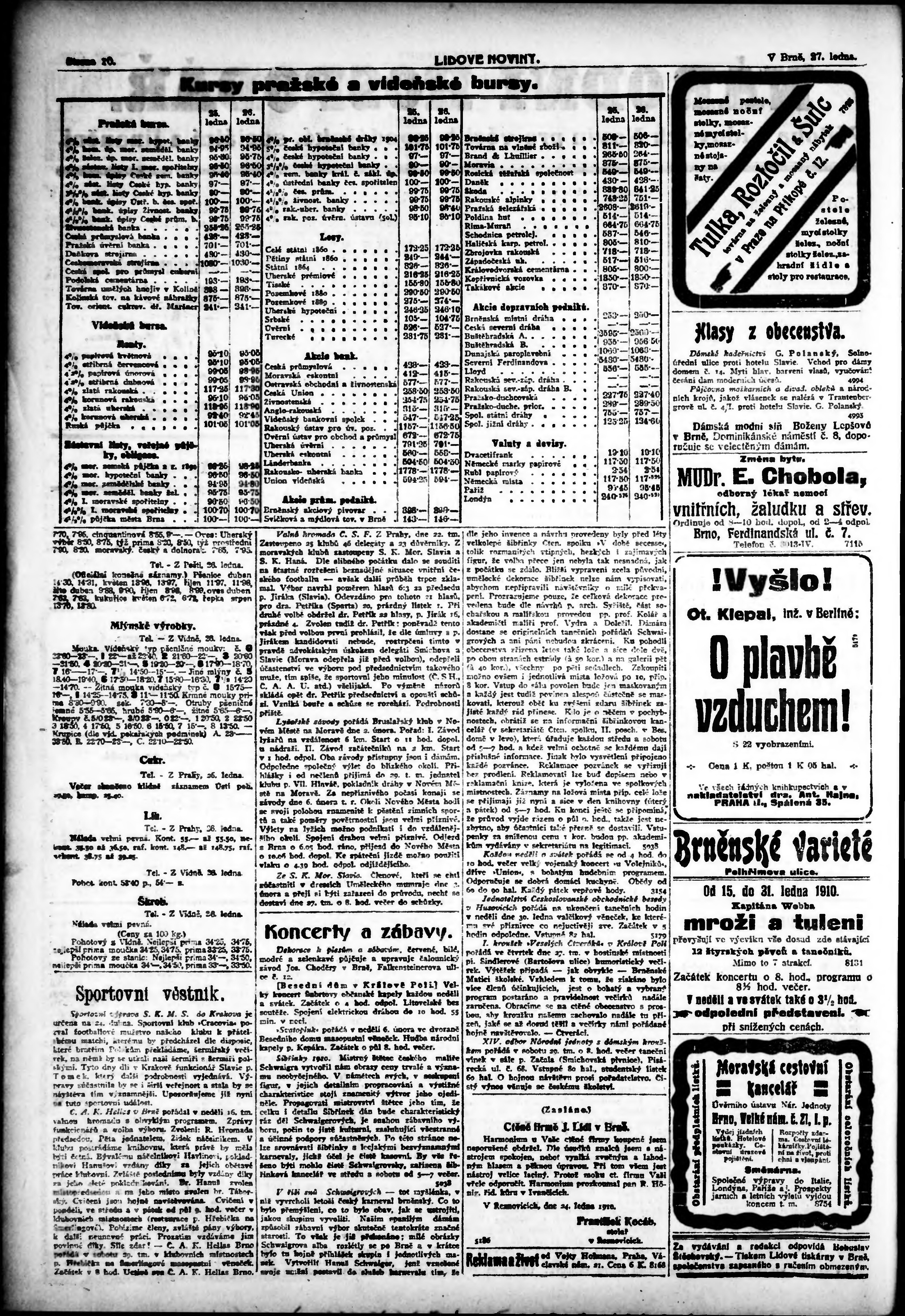 * Datum vydání výtisku: 27.1.1910 Číslo výtisku: 26 Typ výtisku: příloha