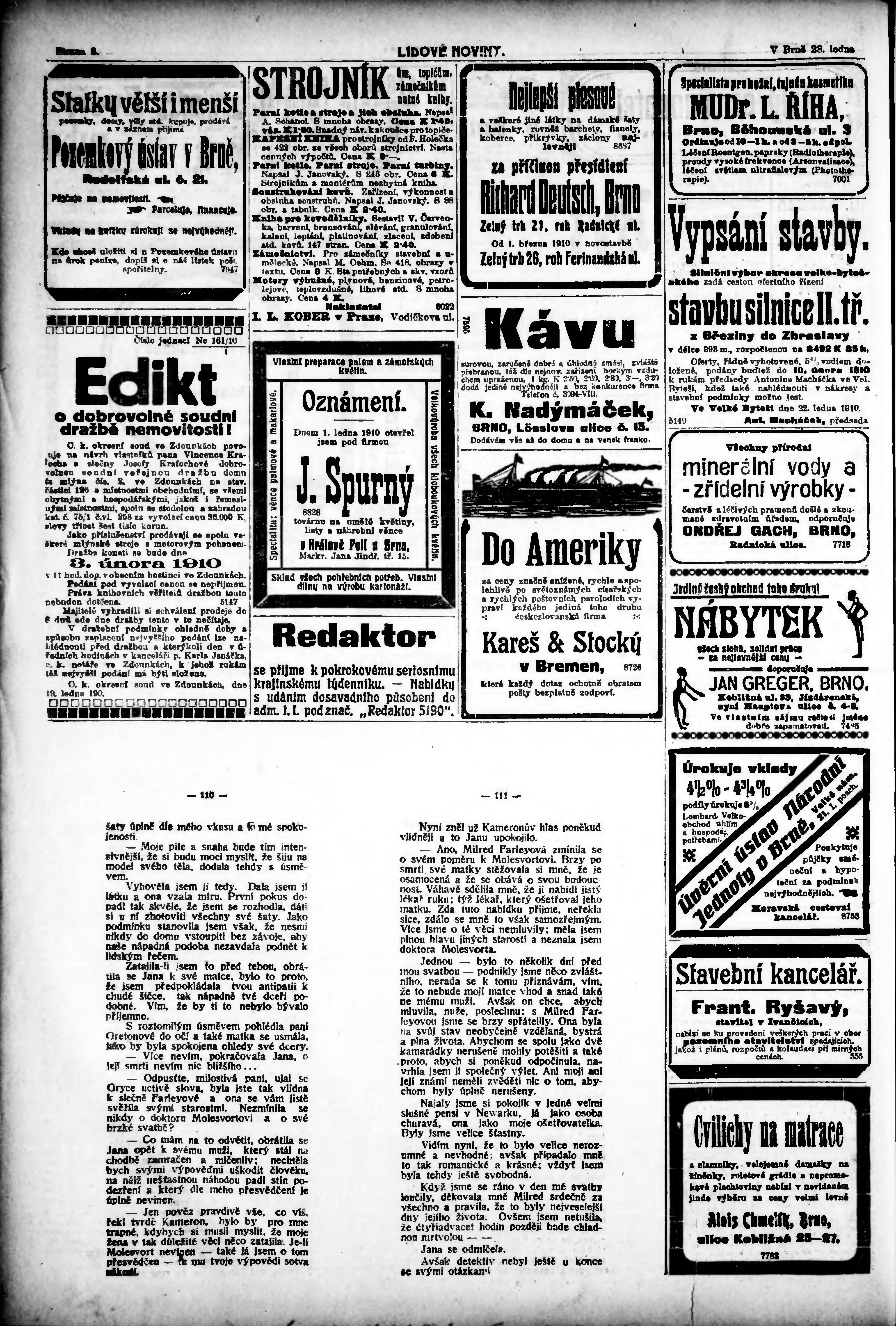 * Datum vydání výtisku: 28.1.1910 Číslo výtisku: 27