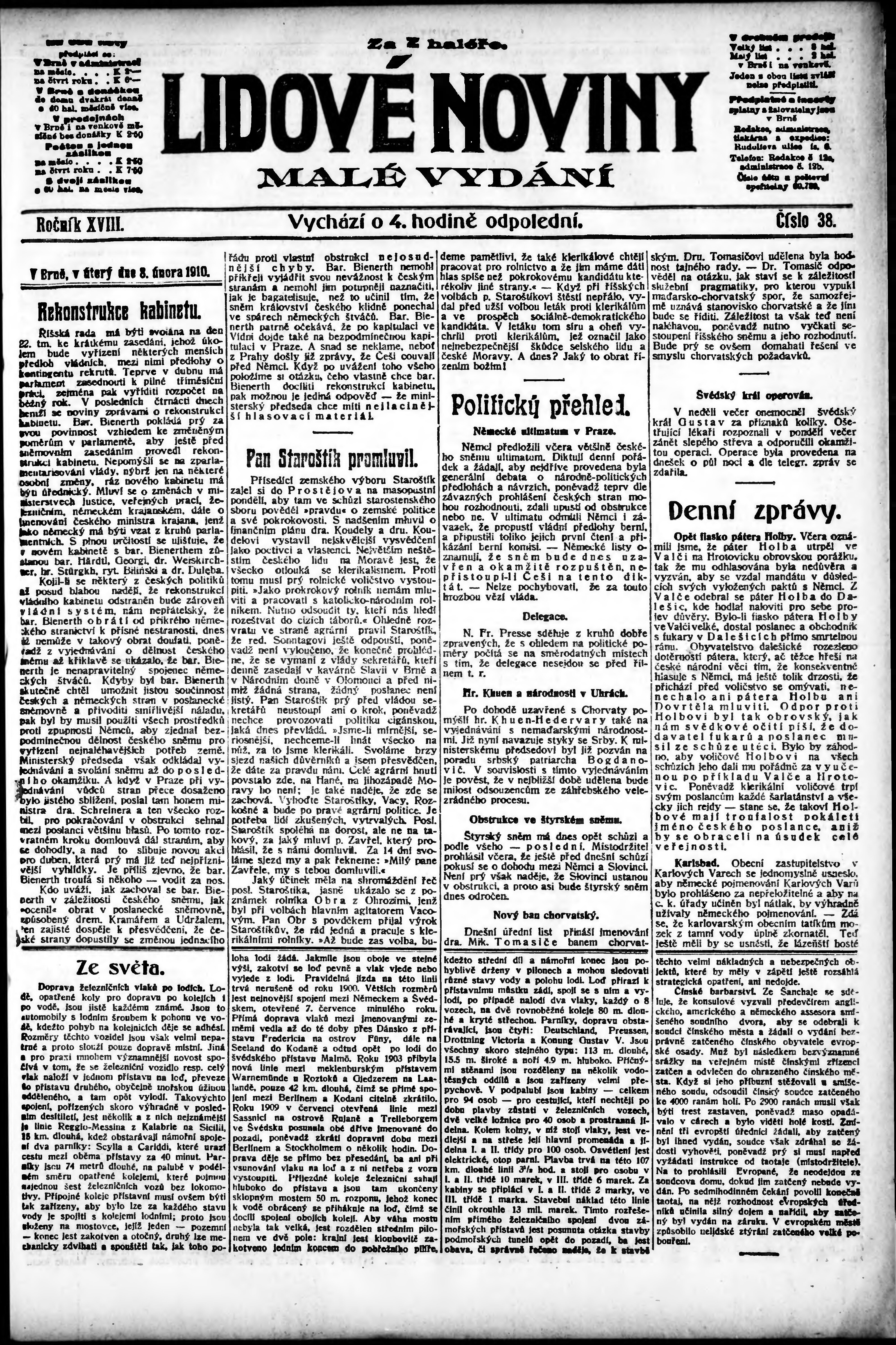 * Datum vydání výtisku: 8.2.1910 Číslo výtisku: 38 Poznámky k výtisku: malé vydání;
