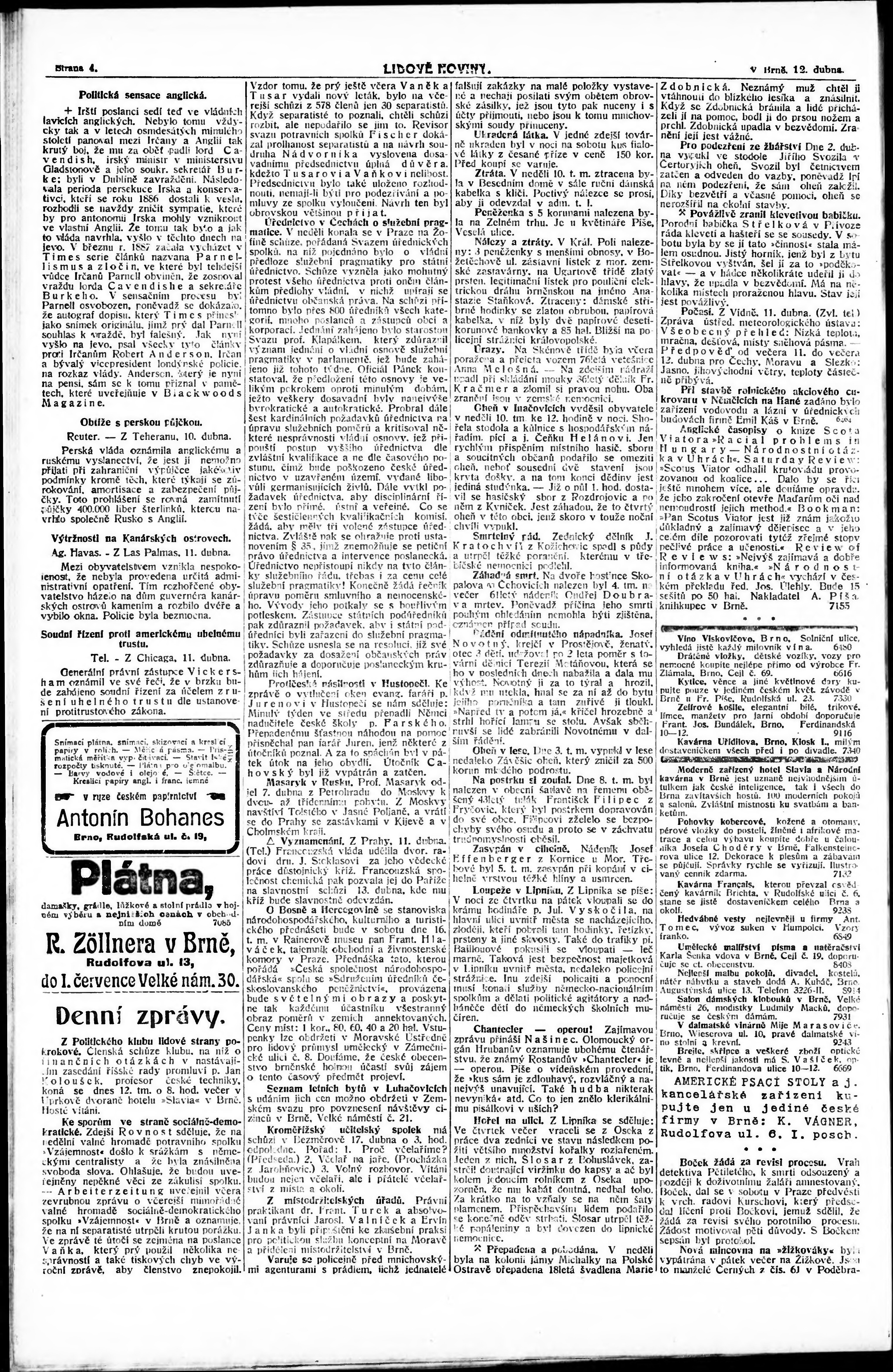 * Datum vydání výtisku: 12.4.1910 Číslo výtisku: 99
