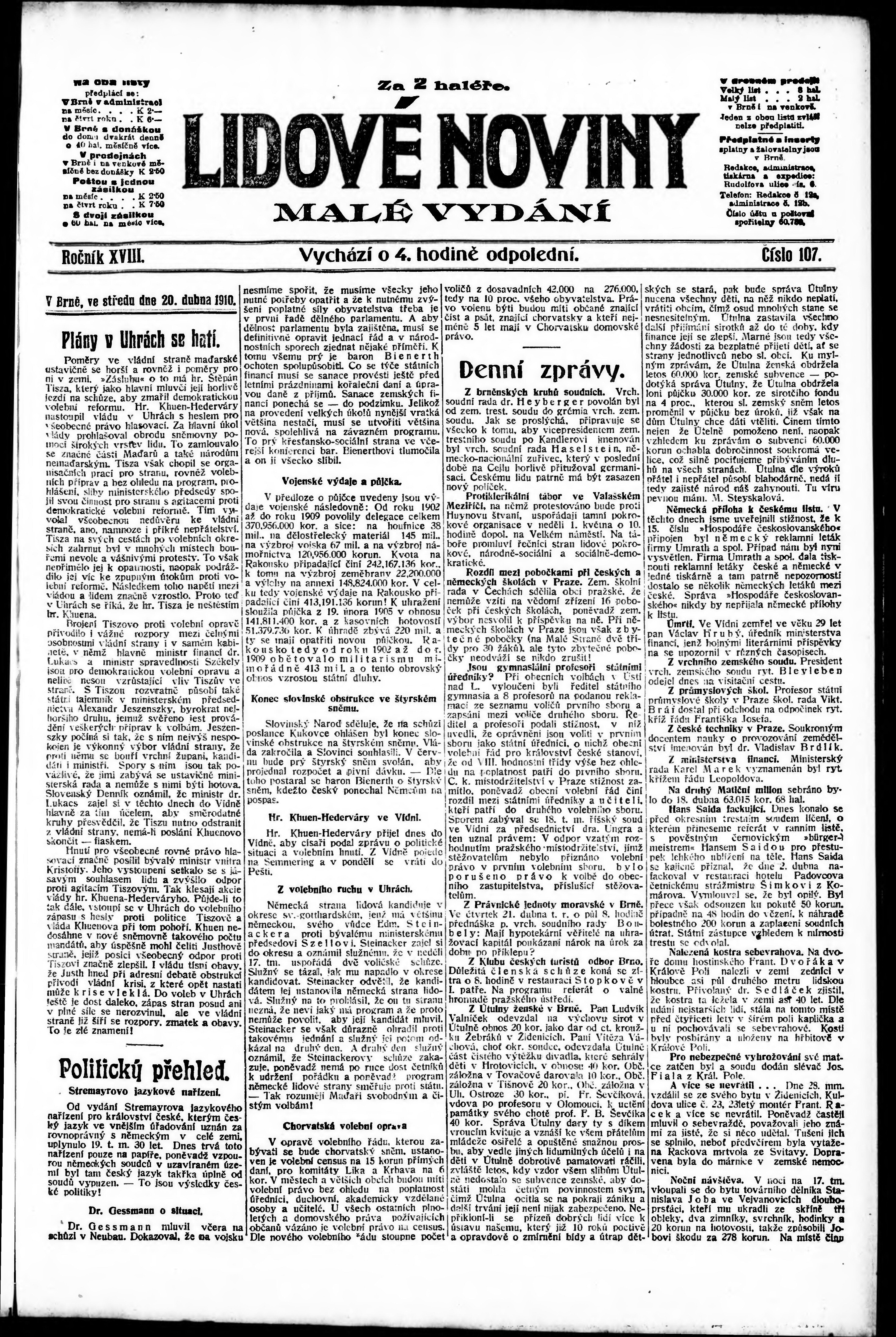 * Datum vydání výtisku: 20.4.1910 Číslo výtisku: 107 Poznámky k výtisku: malé vydání;