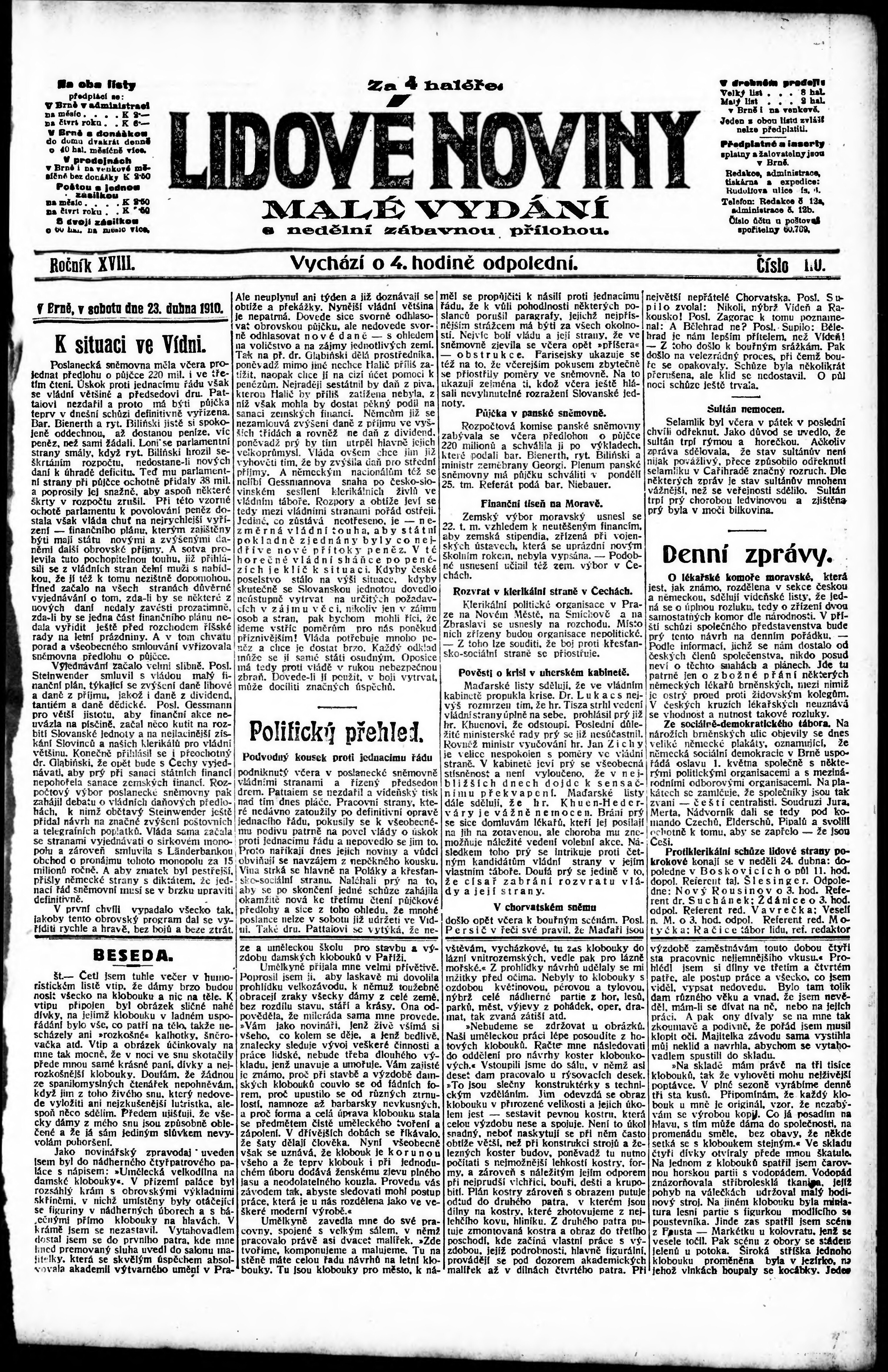 Datum vydání výtisku: 23.4.1910