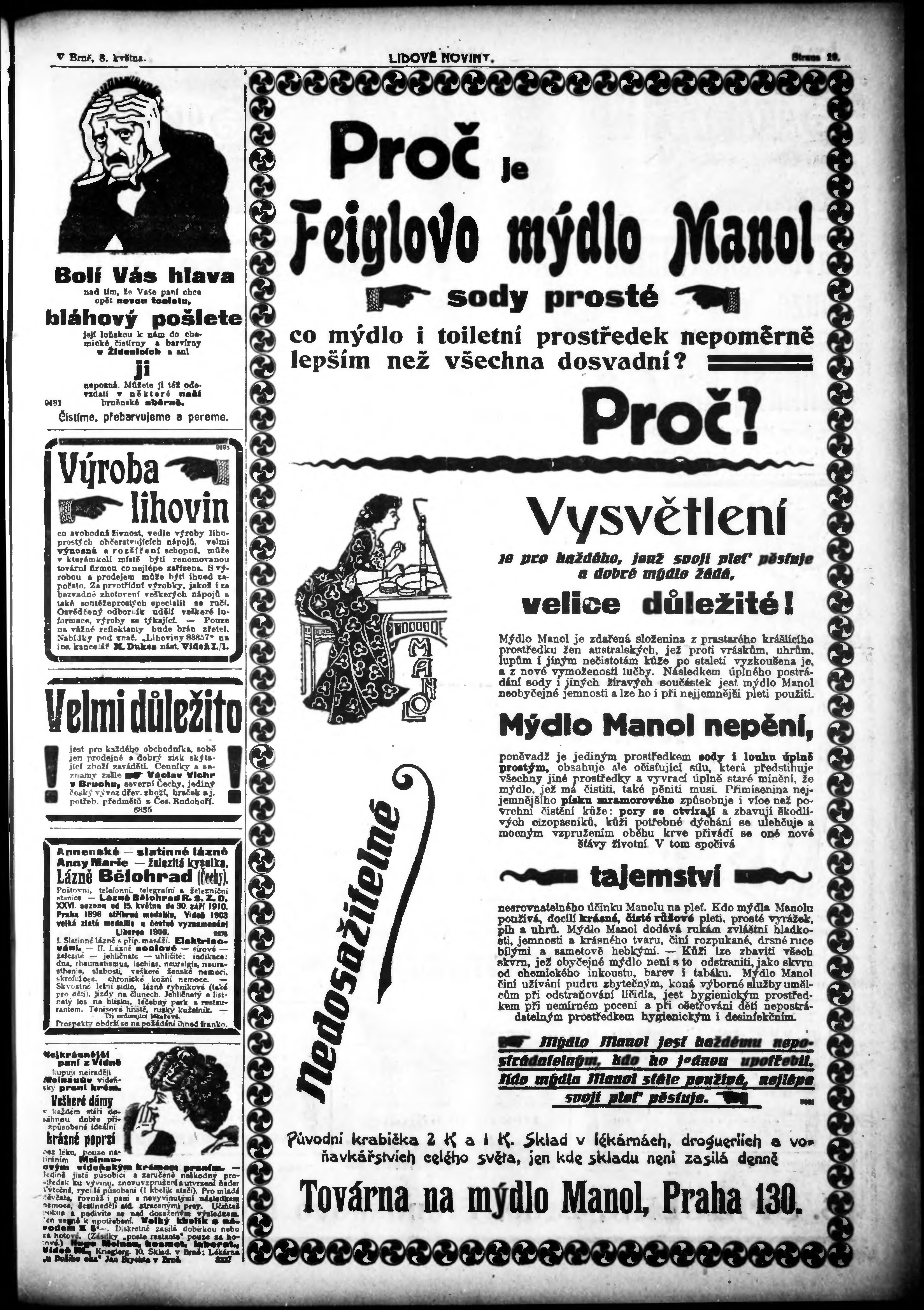 * Datum vydání výtisku: 15.5.1910 Číslo výtisku: 132 Poznámky k výtisku: po konfiskaci opravené vydání;