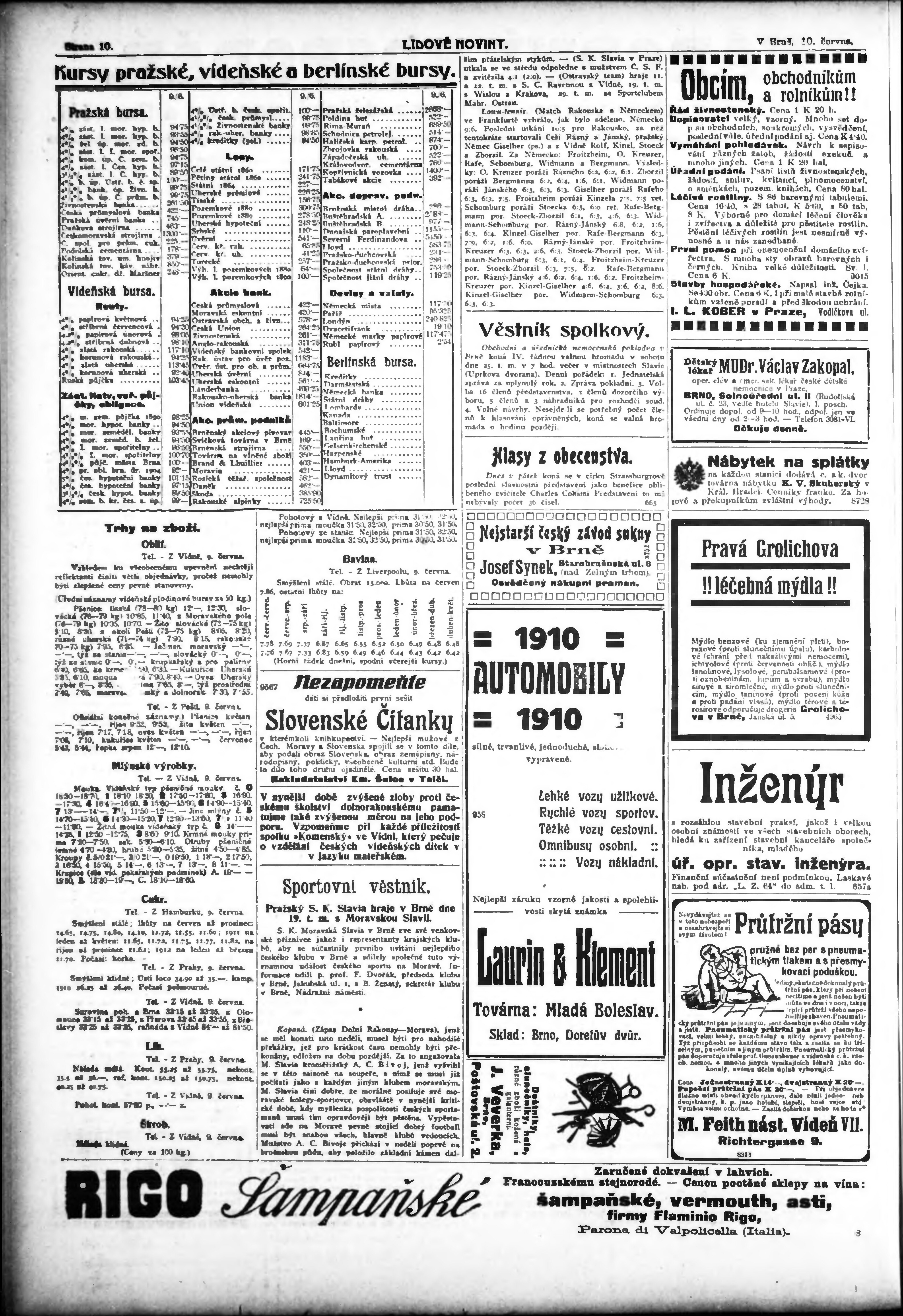 * Datum vydání výtisku: 10.6.1910 Číslo výtisku: 157 Typ výtisku: příloha