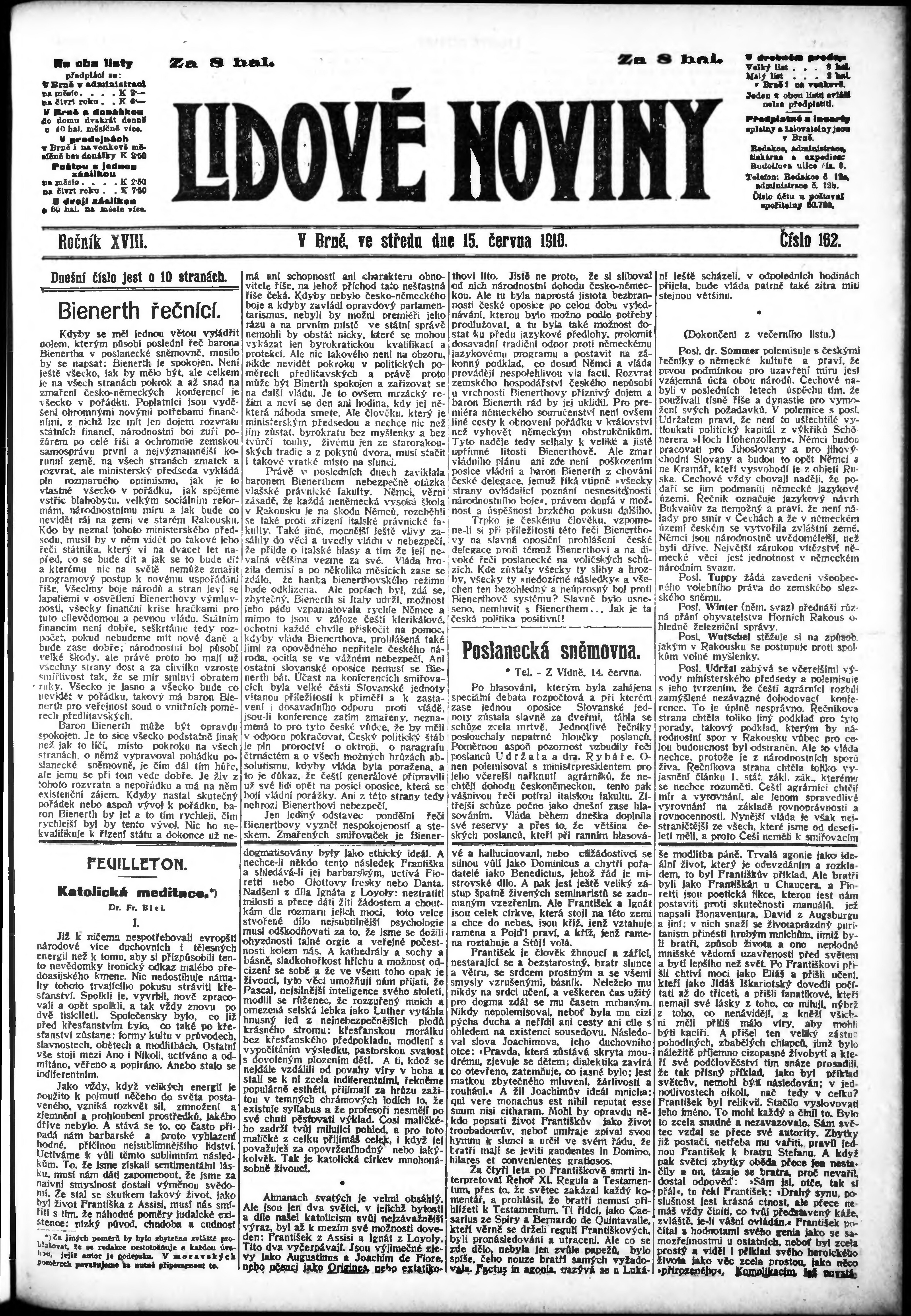 * Datum vydání výtisku: 15.6.1910 Číslo výtisku: 162