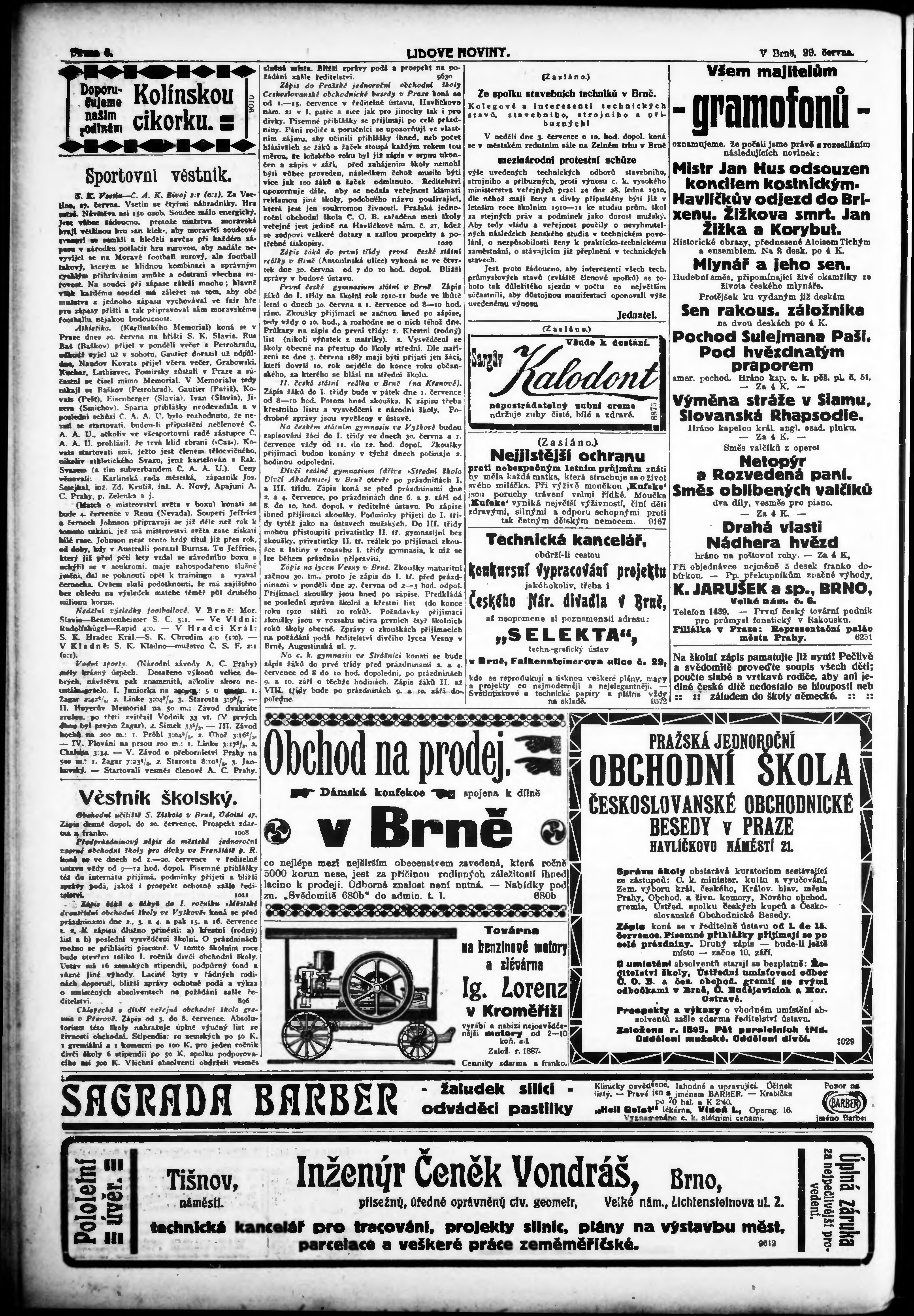 * Datum vydání výtisku: 29.6.1910 Číslo výtisku: 176