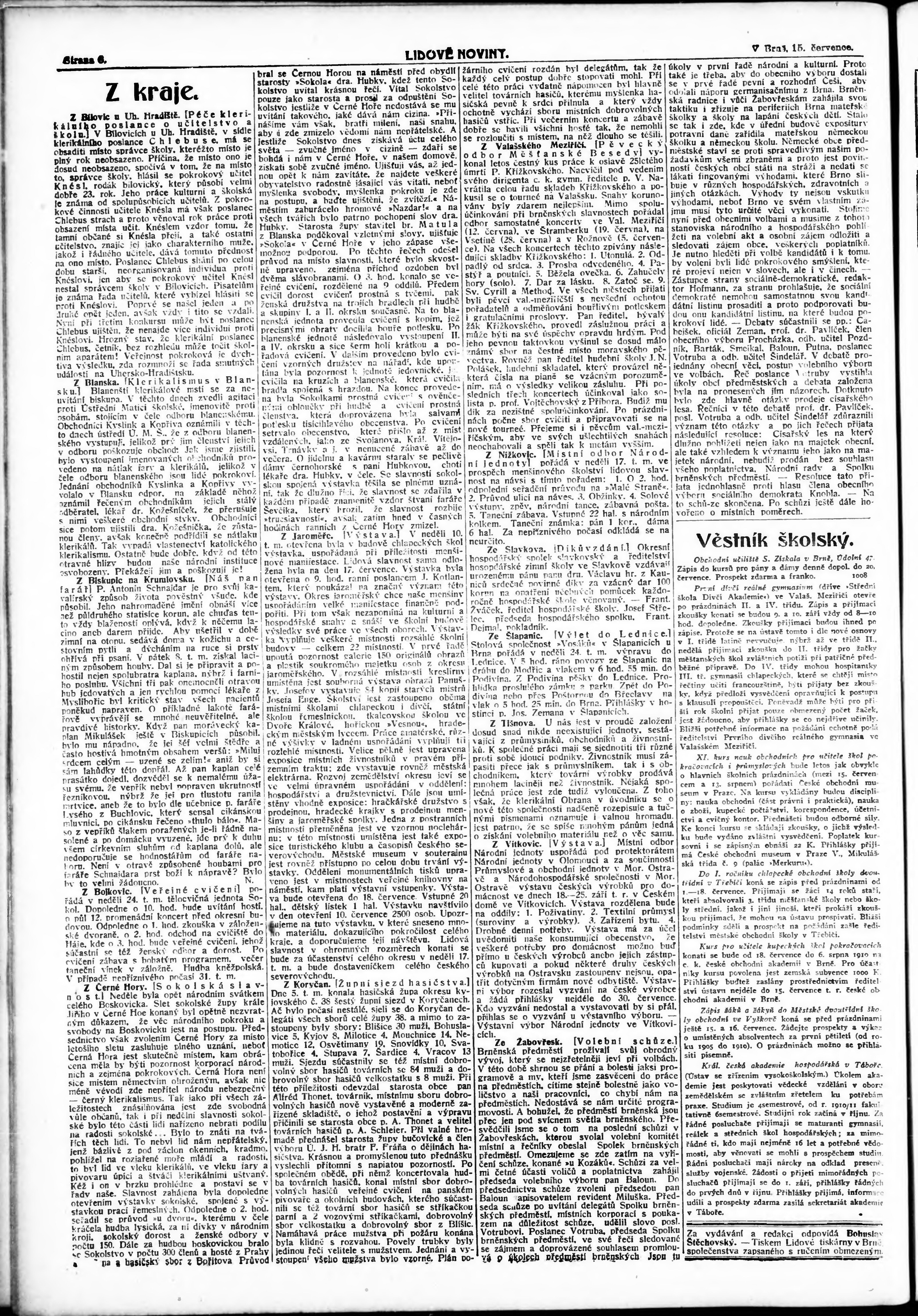 * Datum vydání výtisku: 15.7.1910 Číslo výtisku: 192
