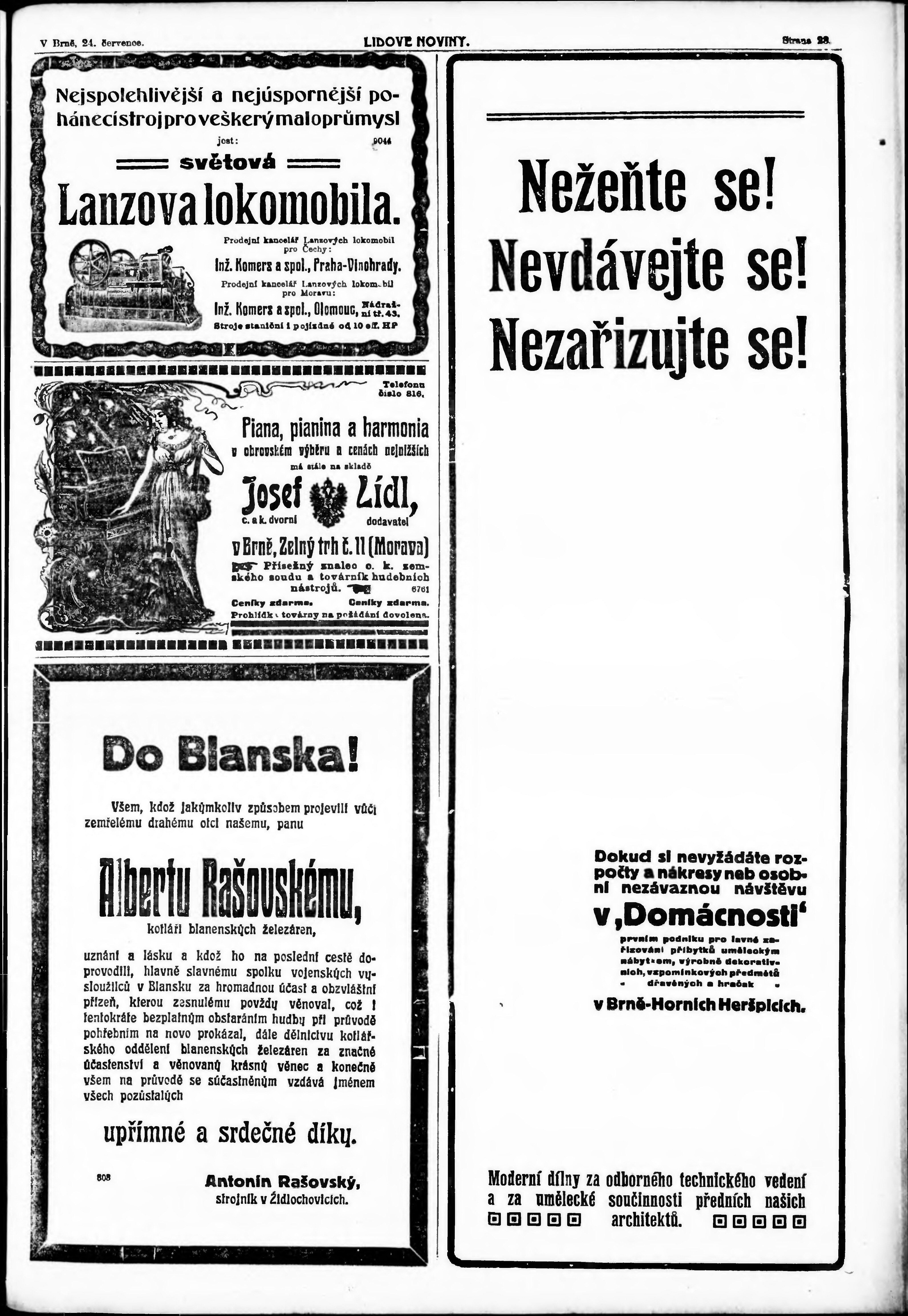 * Datum vydání výtisku: 24.7.1910 Číslo výtisku: 201 Typ výtisku: příloha