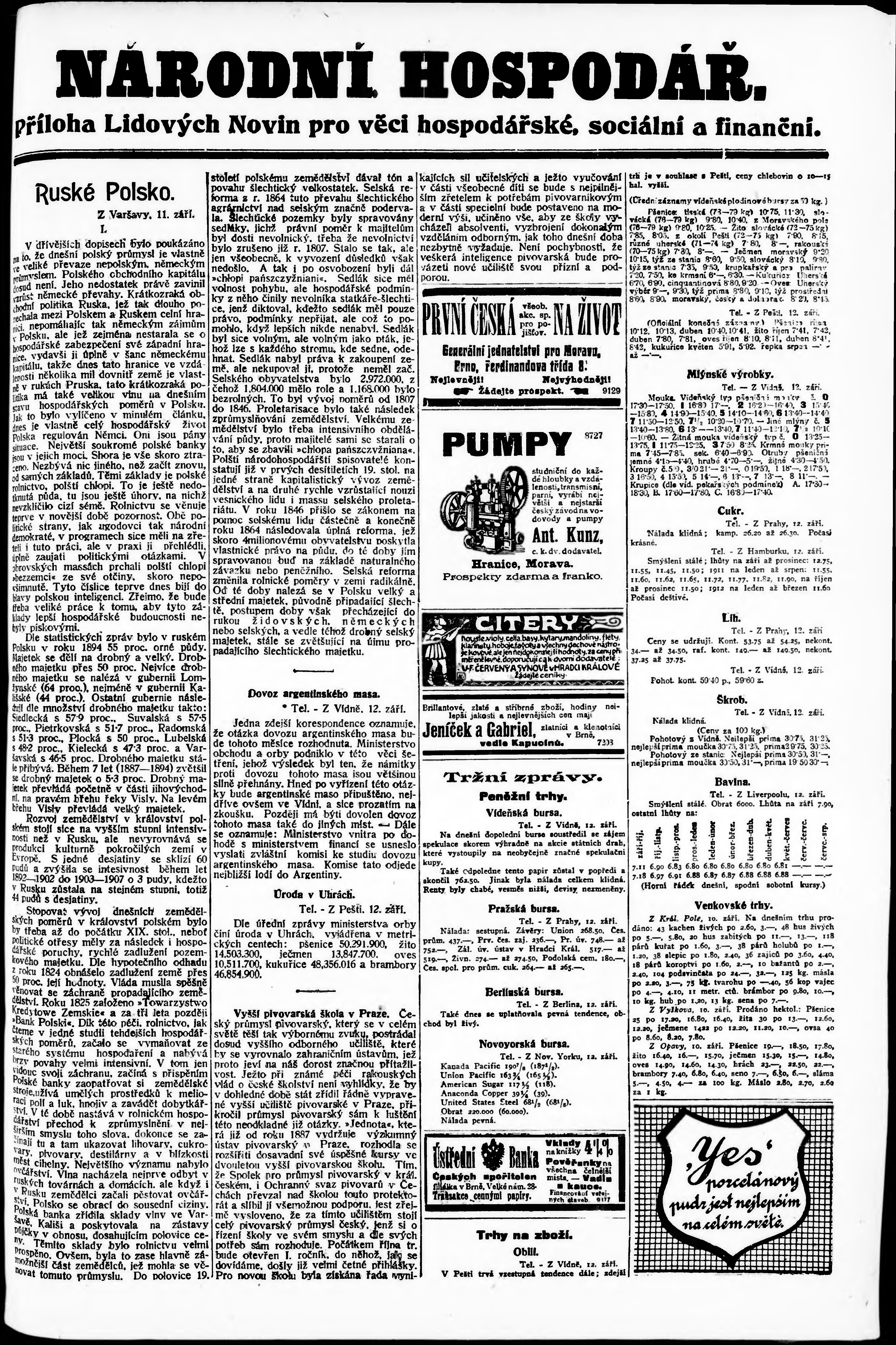 * Datum vydání výtisku: 13.9.1910 Číslo výtisku: 251 Typ výtisku: příloha