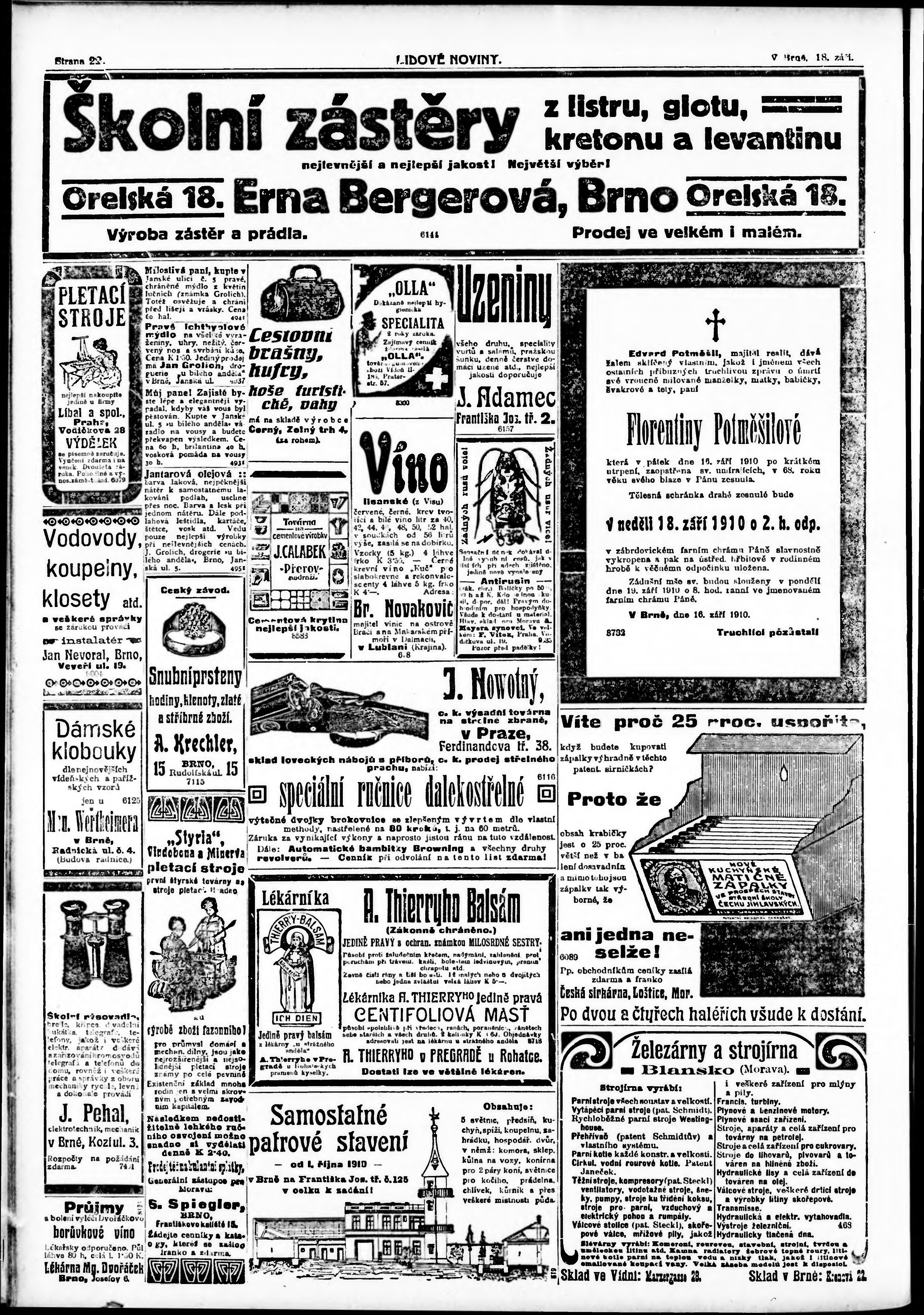 * Datum vydání výtisku: 18.9.1910 Číslo výtisku: 256 Typ výtisku: příloha Poznámky k výtisku: s. 11 - 18 není k dispozici;
