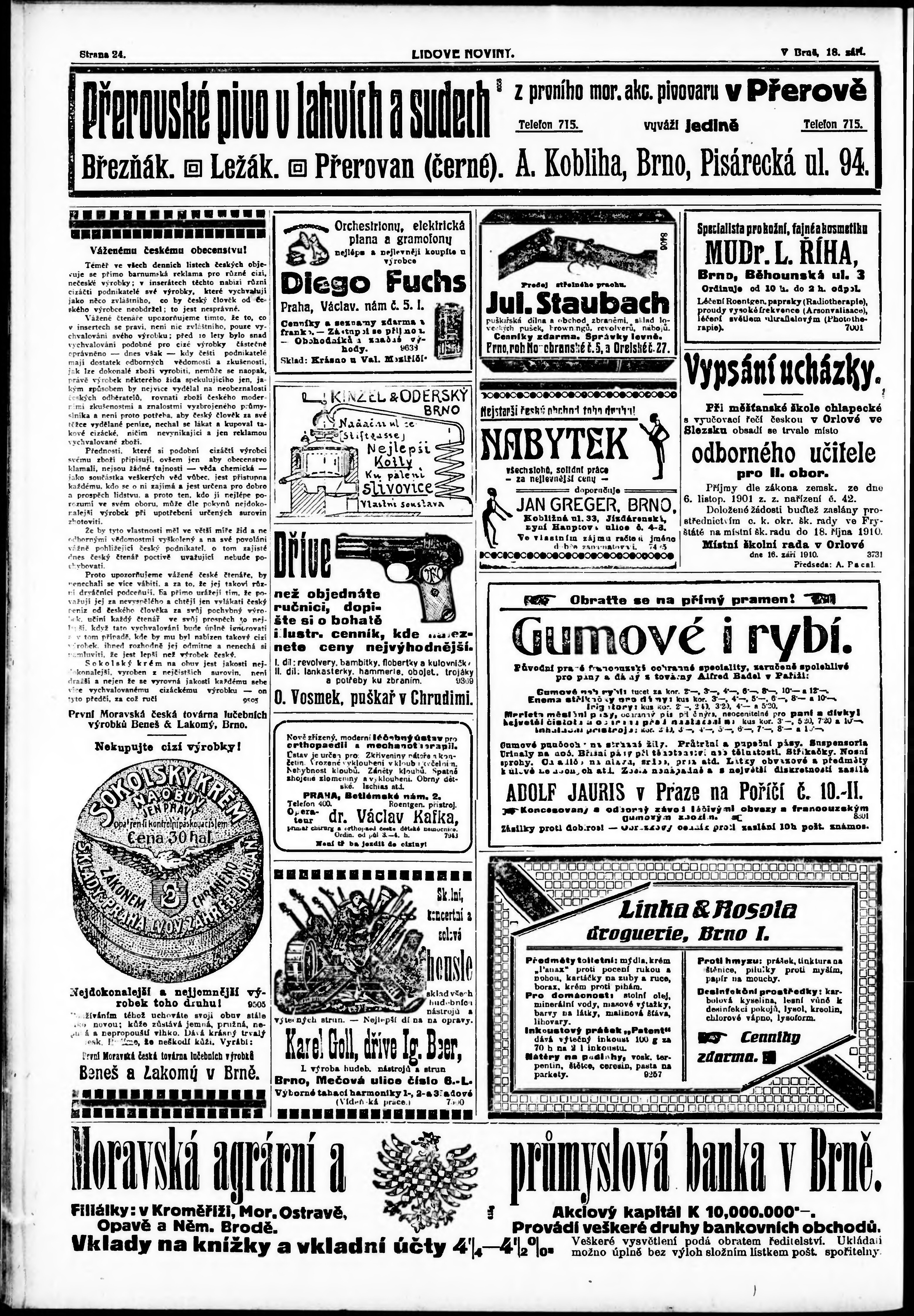 * Datum vydání výtisku: 18.9.1910 Číslo výtisku: 256 Typ výtisku: příloha Poznámky k výtisku: s. 11 - 18 není k dispozici;