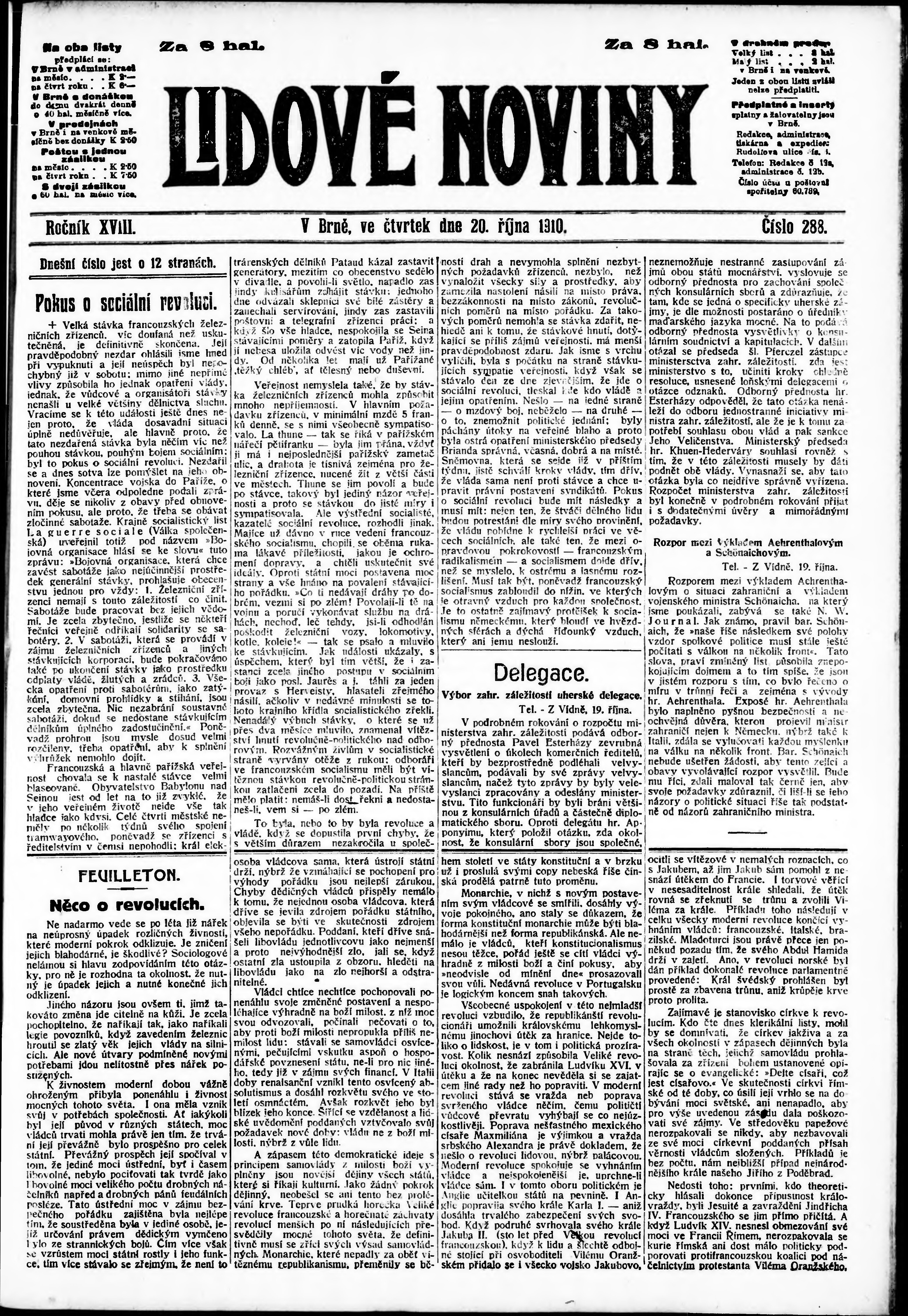 * Datum vydání výtisku: 20.10.1910 Číslo výtisku: 288