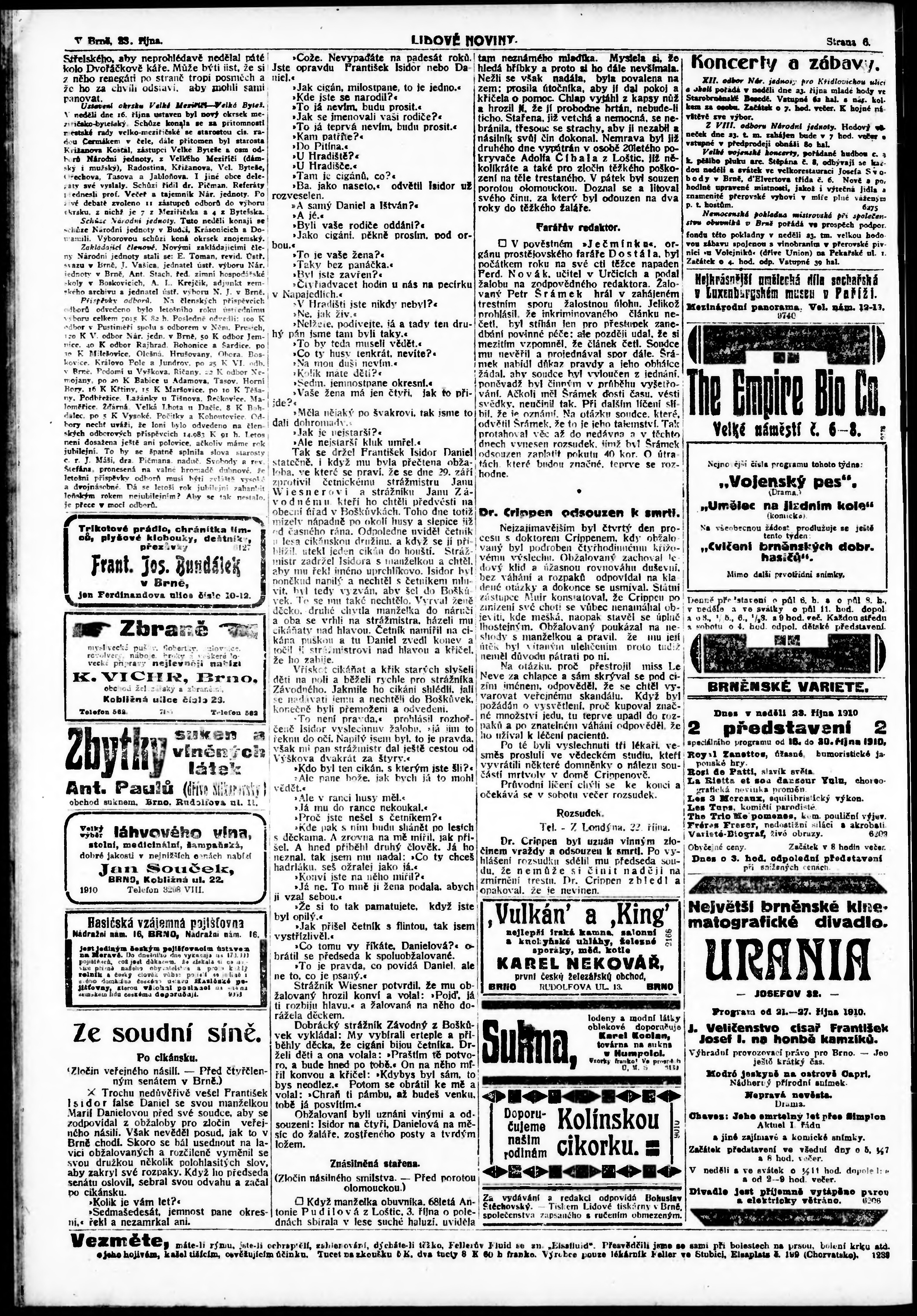 * Datum vydání výtisku: 23.10.1910 Číslo výtisku: 291