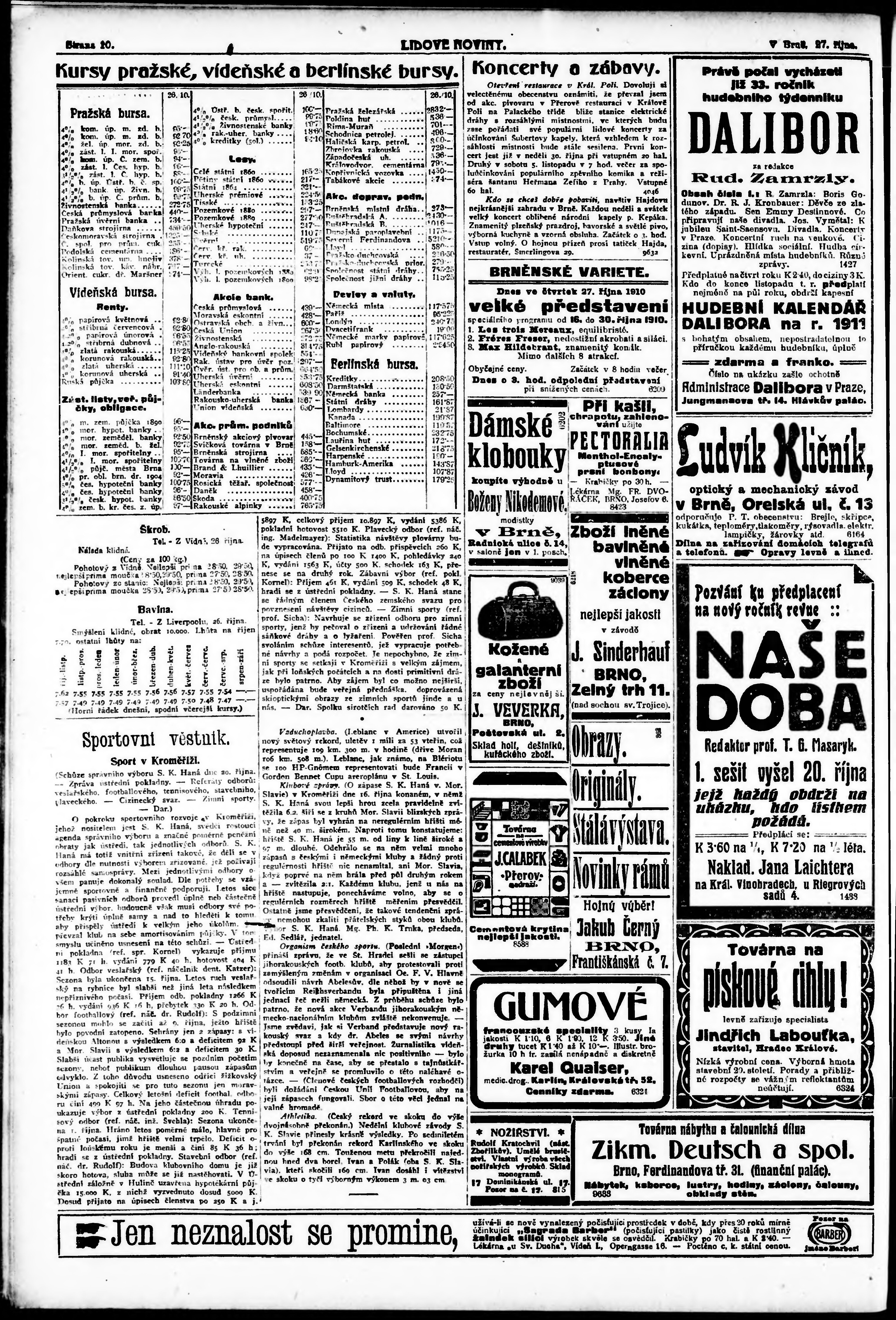* Datum vydání výtisku: 27.10.1910 Číslo výtisku: 295 Typ výtisku: příloha