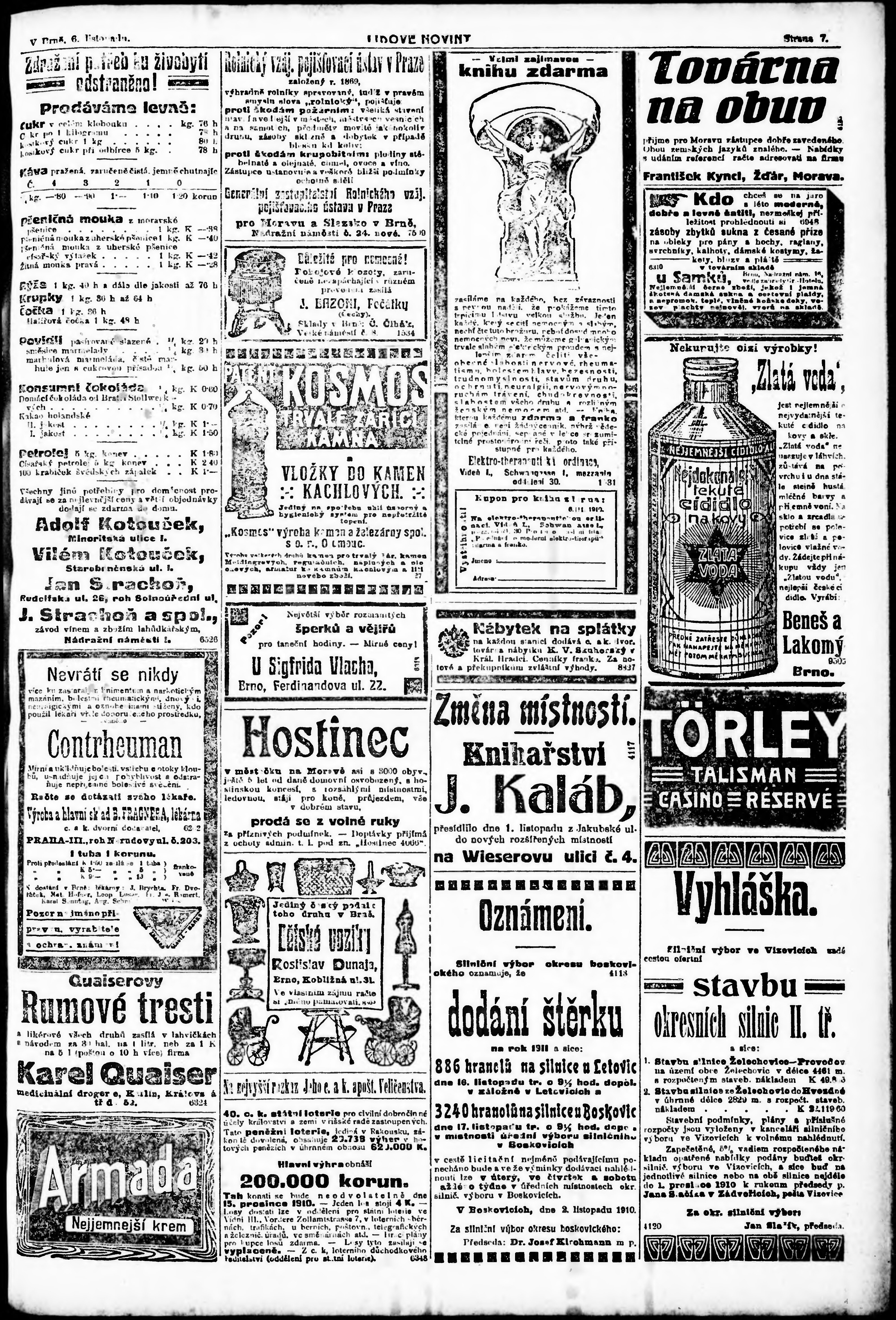 * Datum vydání výtisku: 6.11.1910 Číslo výtisku: 305 Poznámky k výtisku: po konfiskaci opravené vydání;