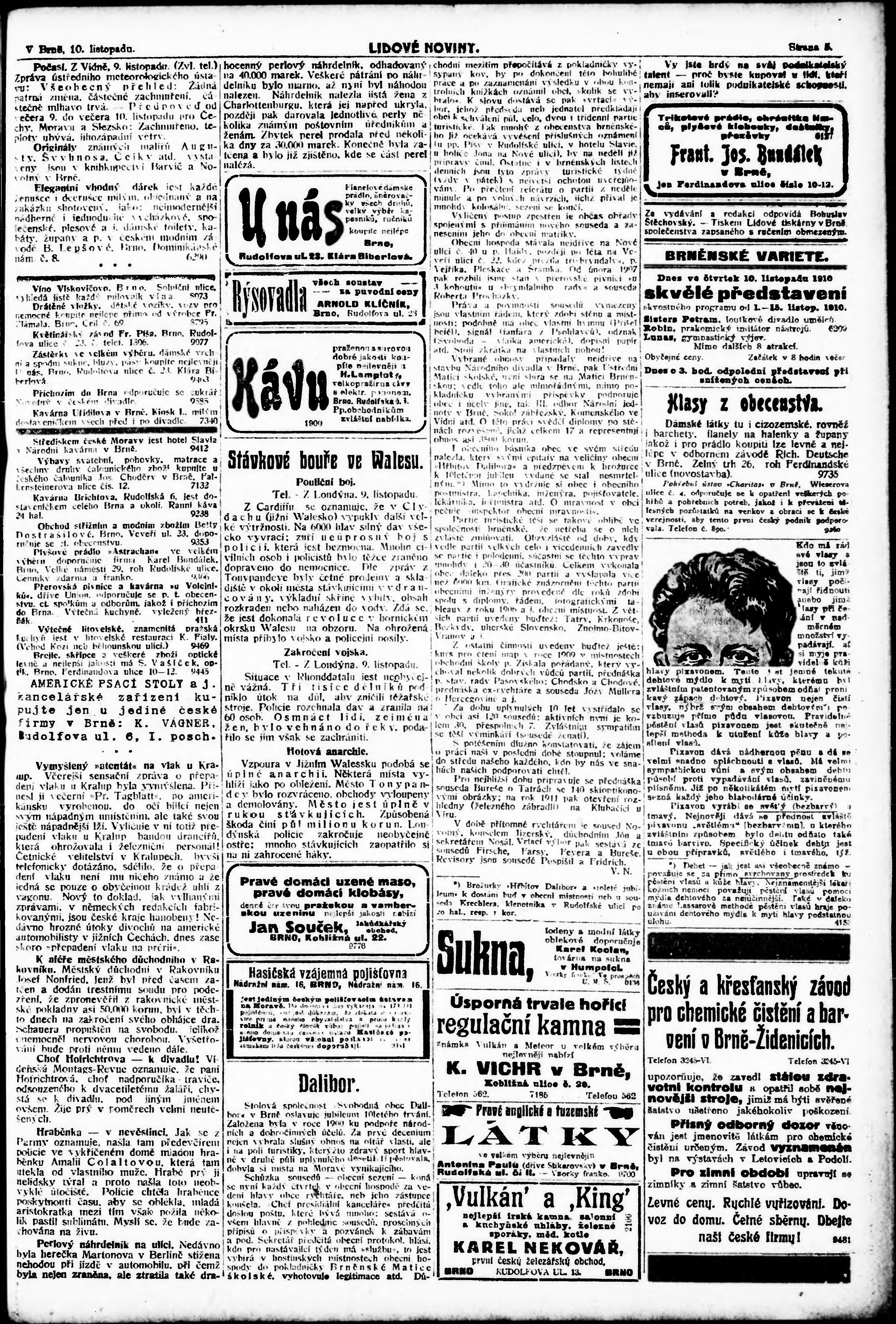 * Datum vydání výtisku: 10.11.1910 Číslo výtisku: 309