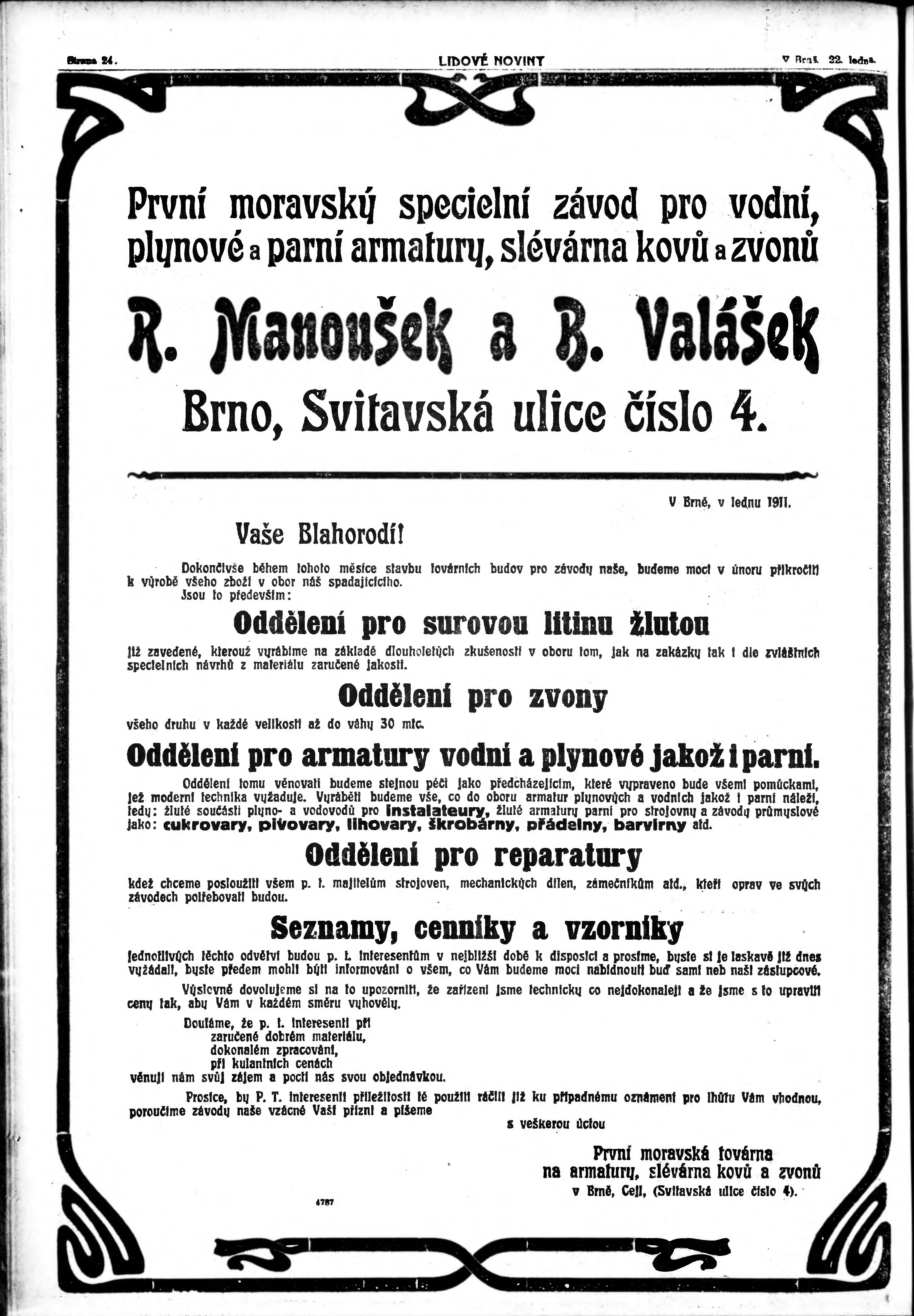 * Datum vydání výtisku: 22.1.1911 Číslo výtisku: 22 Typ výtisku: příloha
