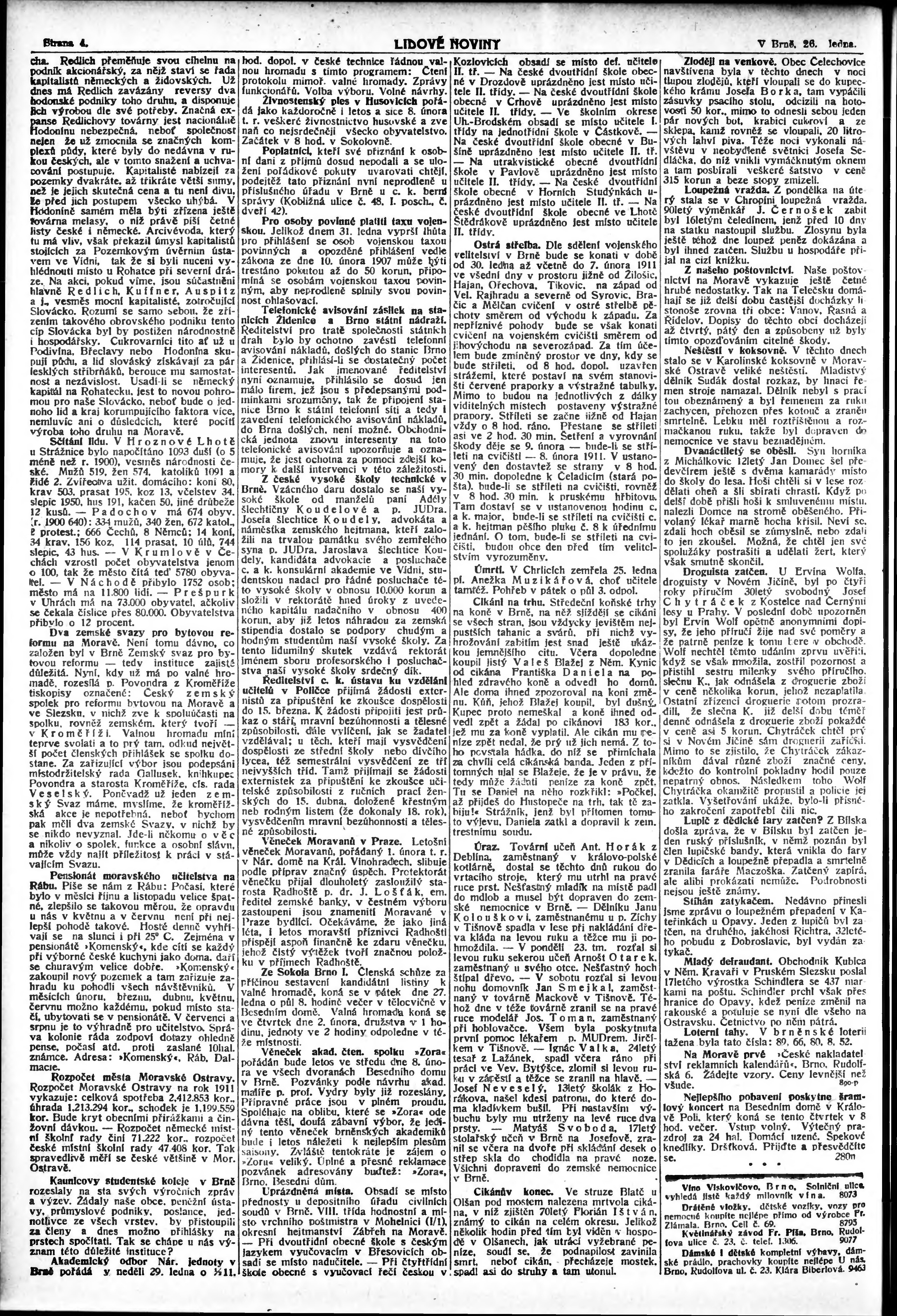 * Datum vydání výtisku: 26.1.1911 Číslo výtisku: 26