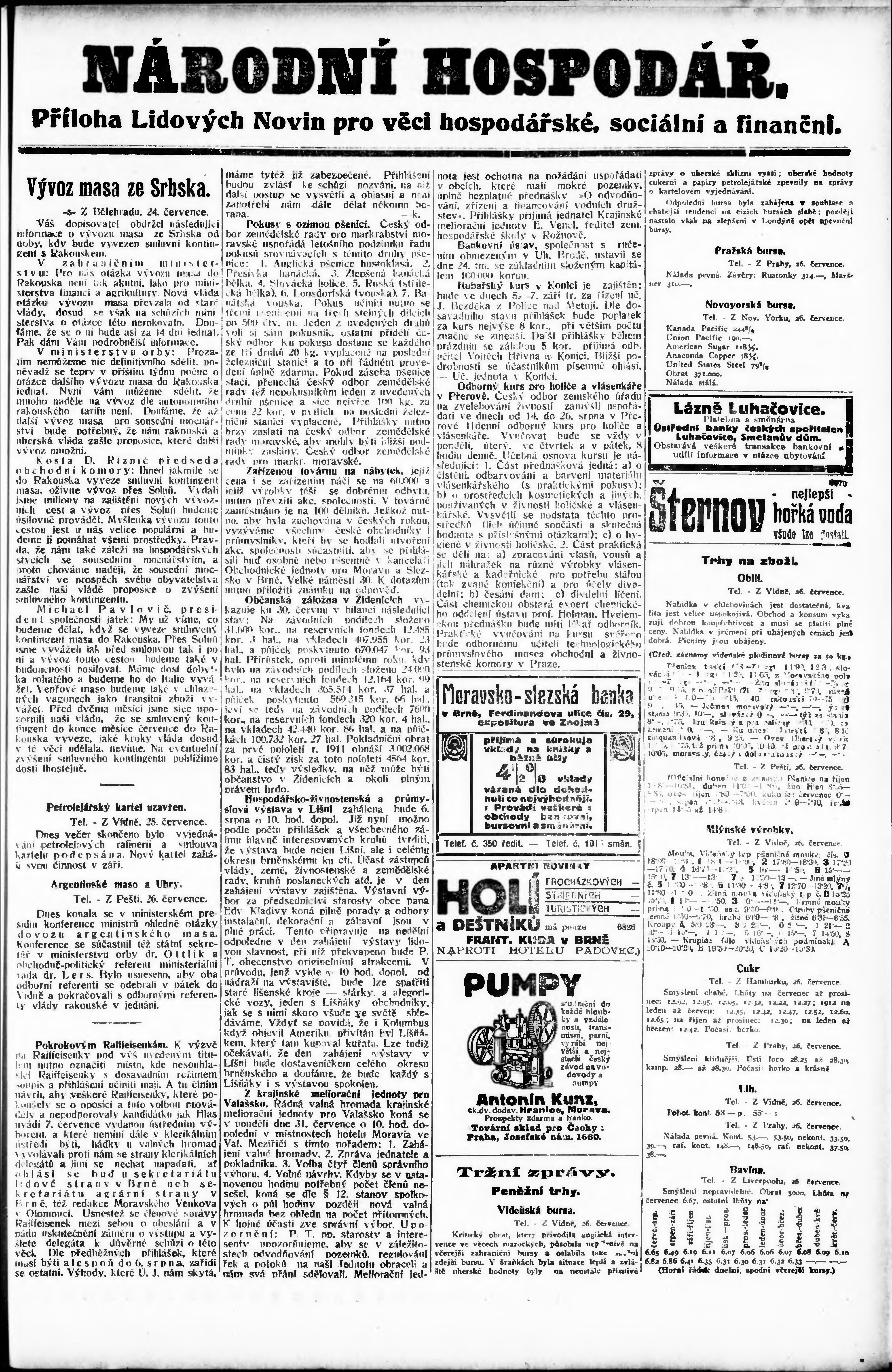 * Datum vydání výtisku: 27.7.1911 Číslo výtisku: 205 Typ výtisku: příloha