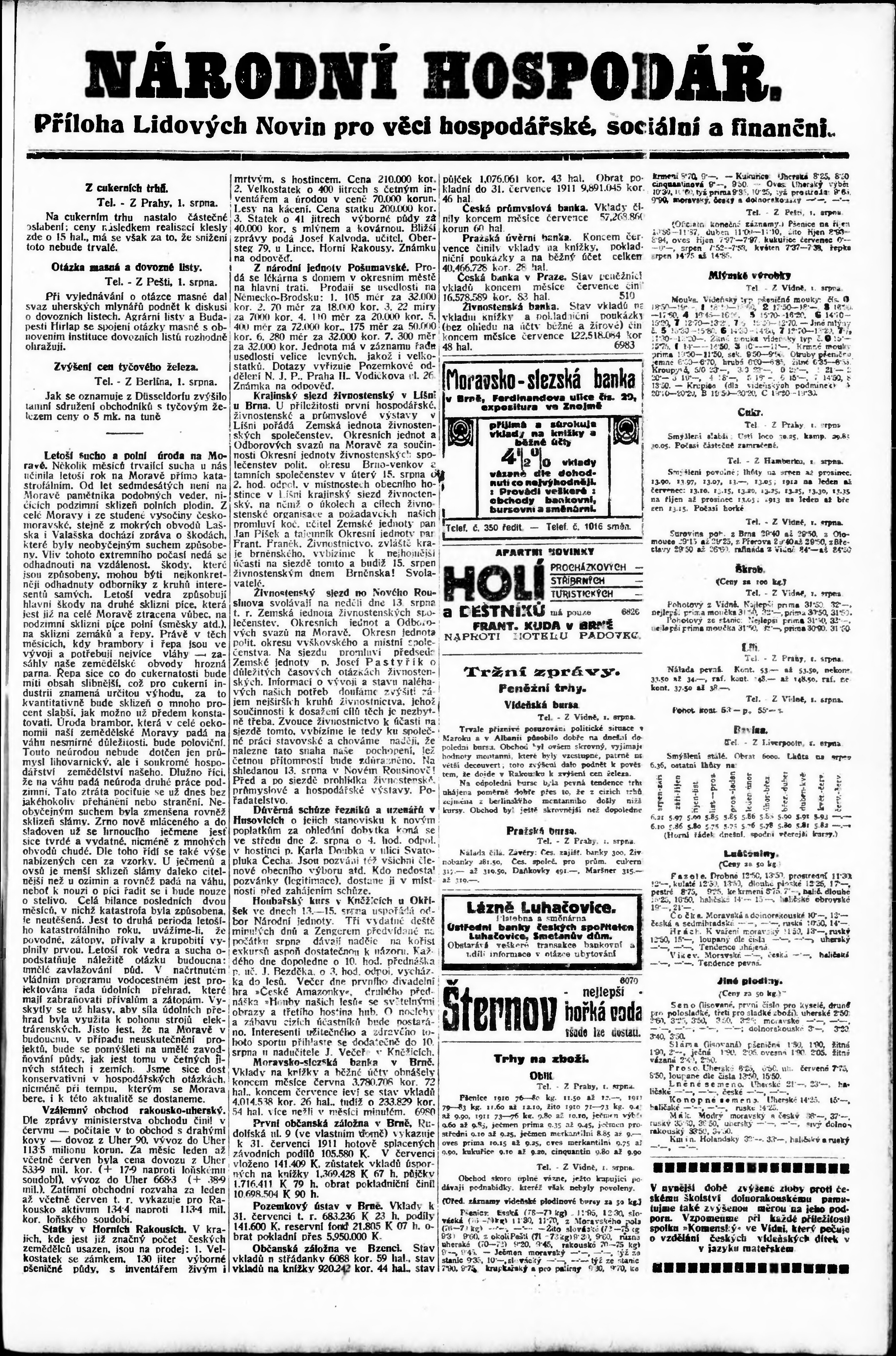 * Datum vydání výtisku: 2.8.1911 Číslo výtisku: 211 Typ výtisku: příloha