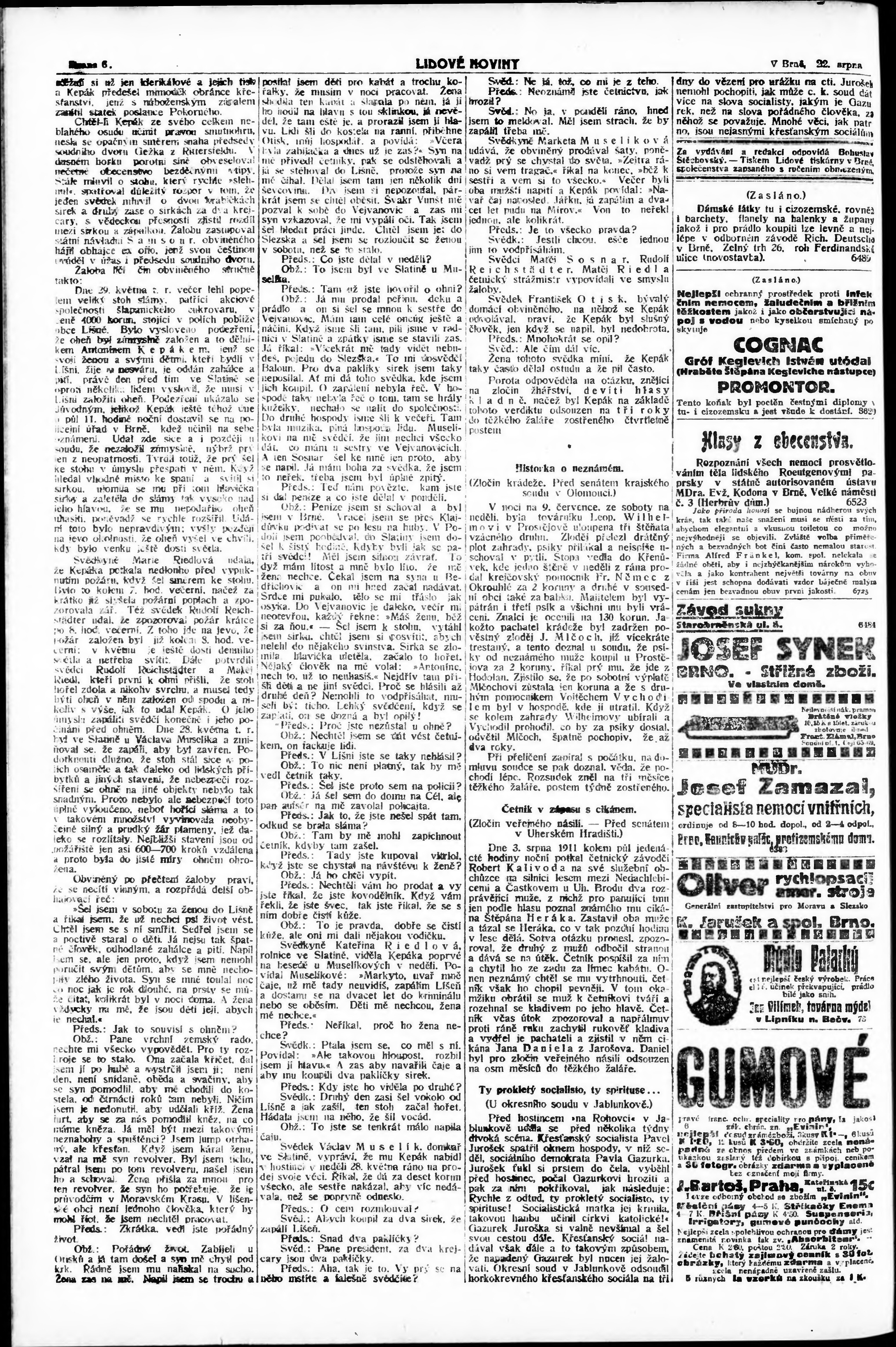 * Datum vydání výtisku: 22.8.1911 Číslo výtisku: 231