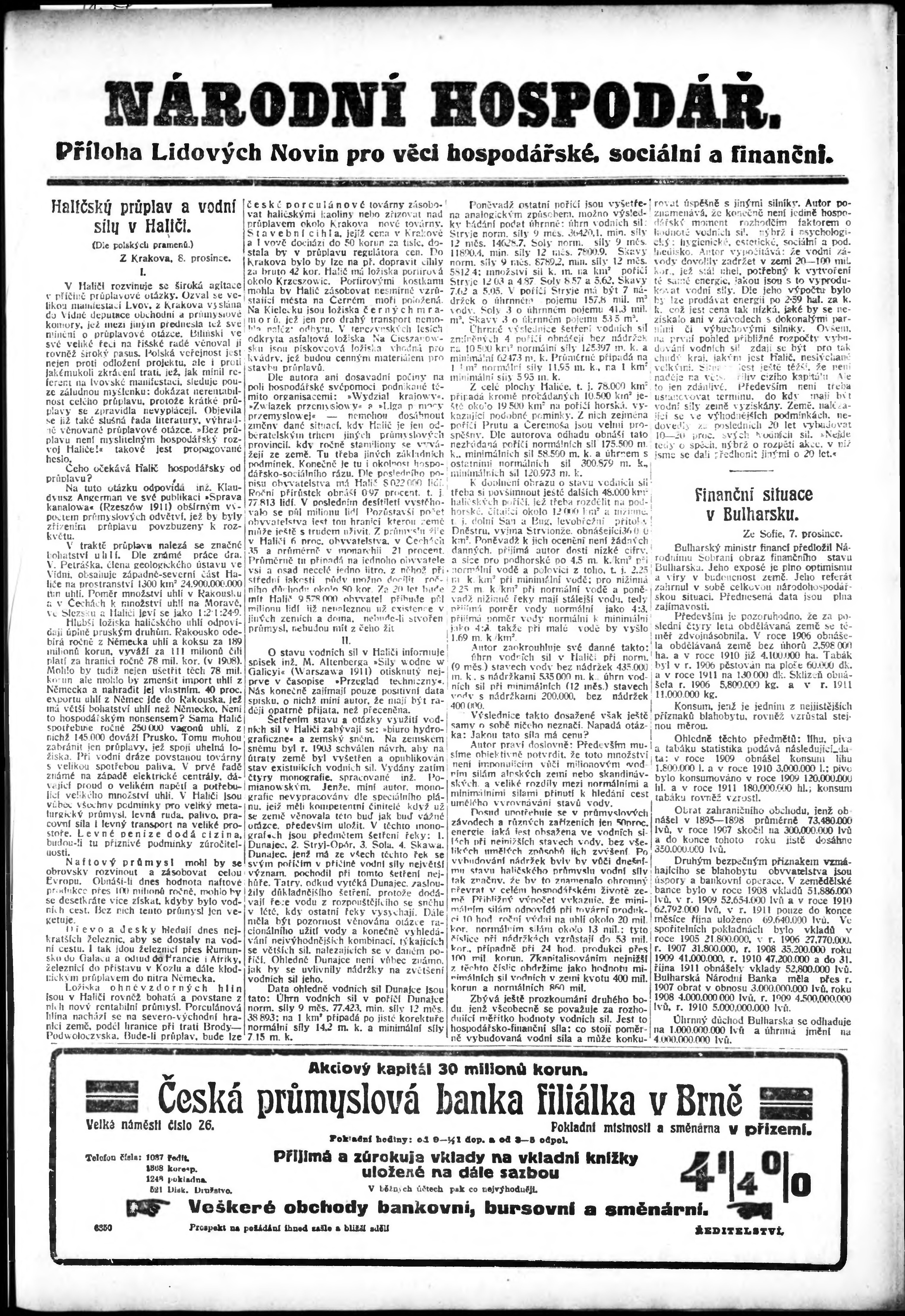 * Datum vydání výtisku: 10.12.1911 Číslo výtisku: 341 Typ výtisku: příloha