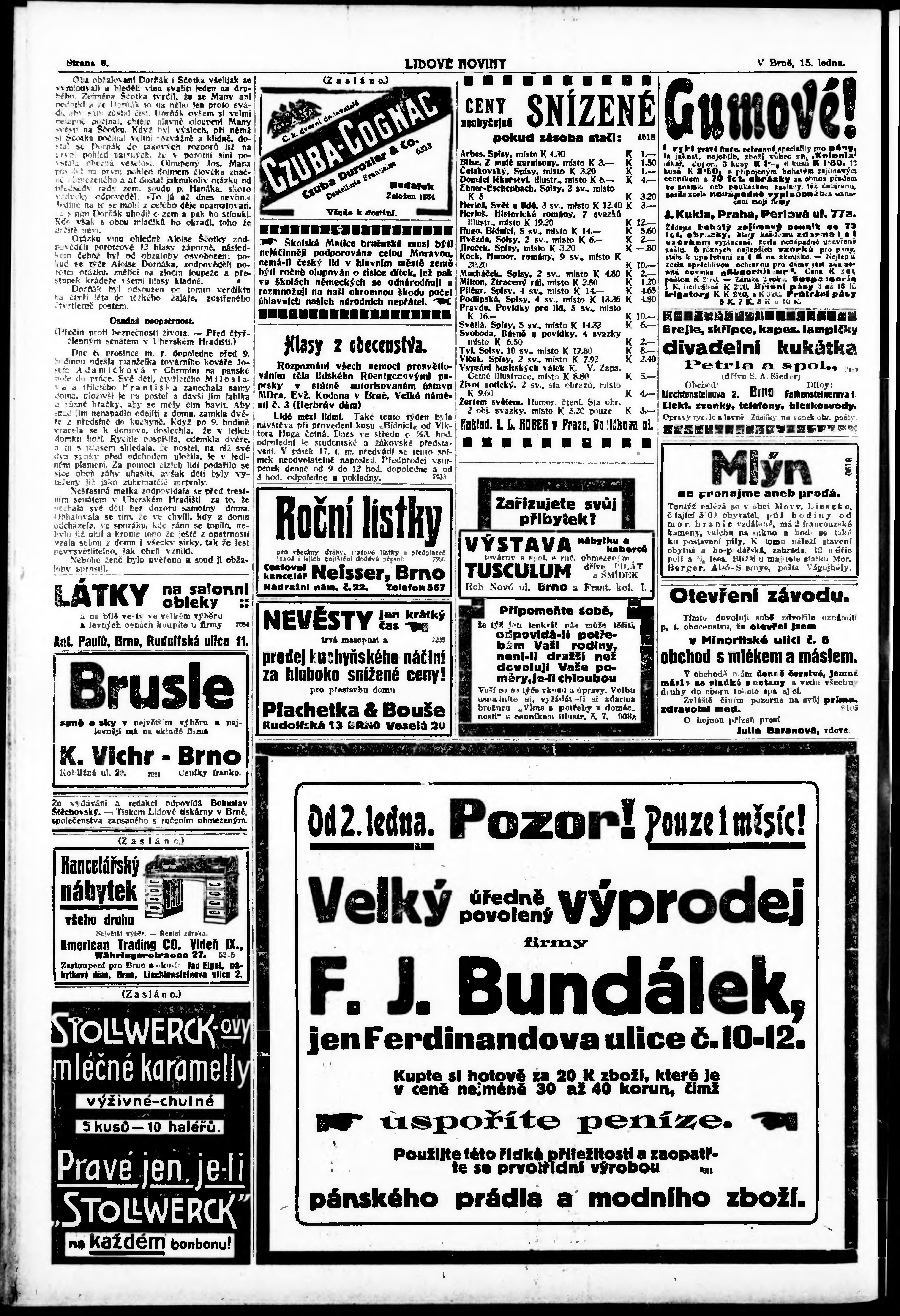 * Datum vydání výtisku: 15.1.1913 Číslo výtisku: 14