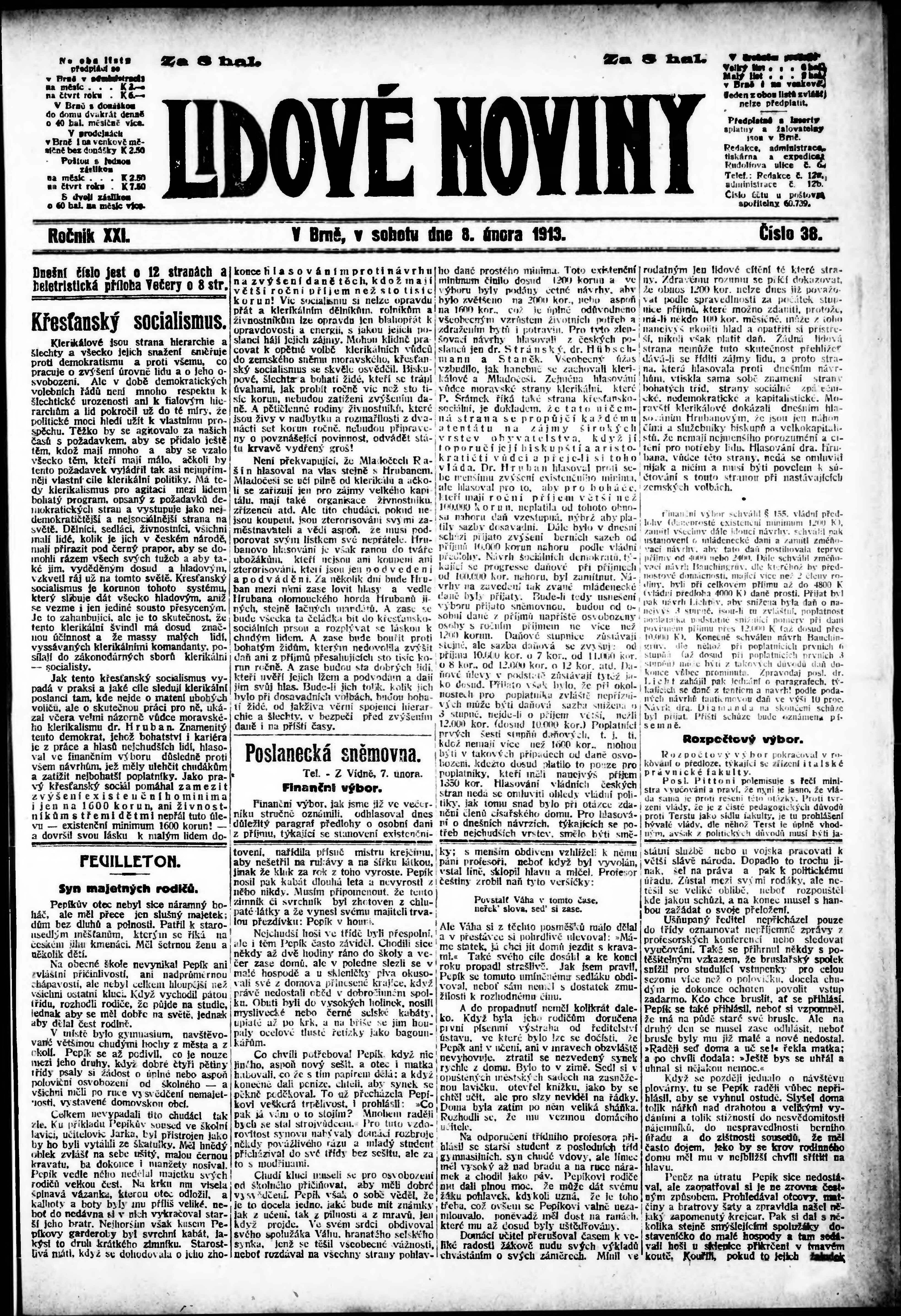 * Datum vydání výtisku: 8.2.1913 Číslo výtisku: 38