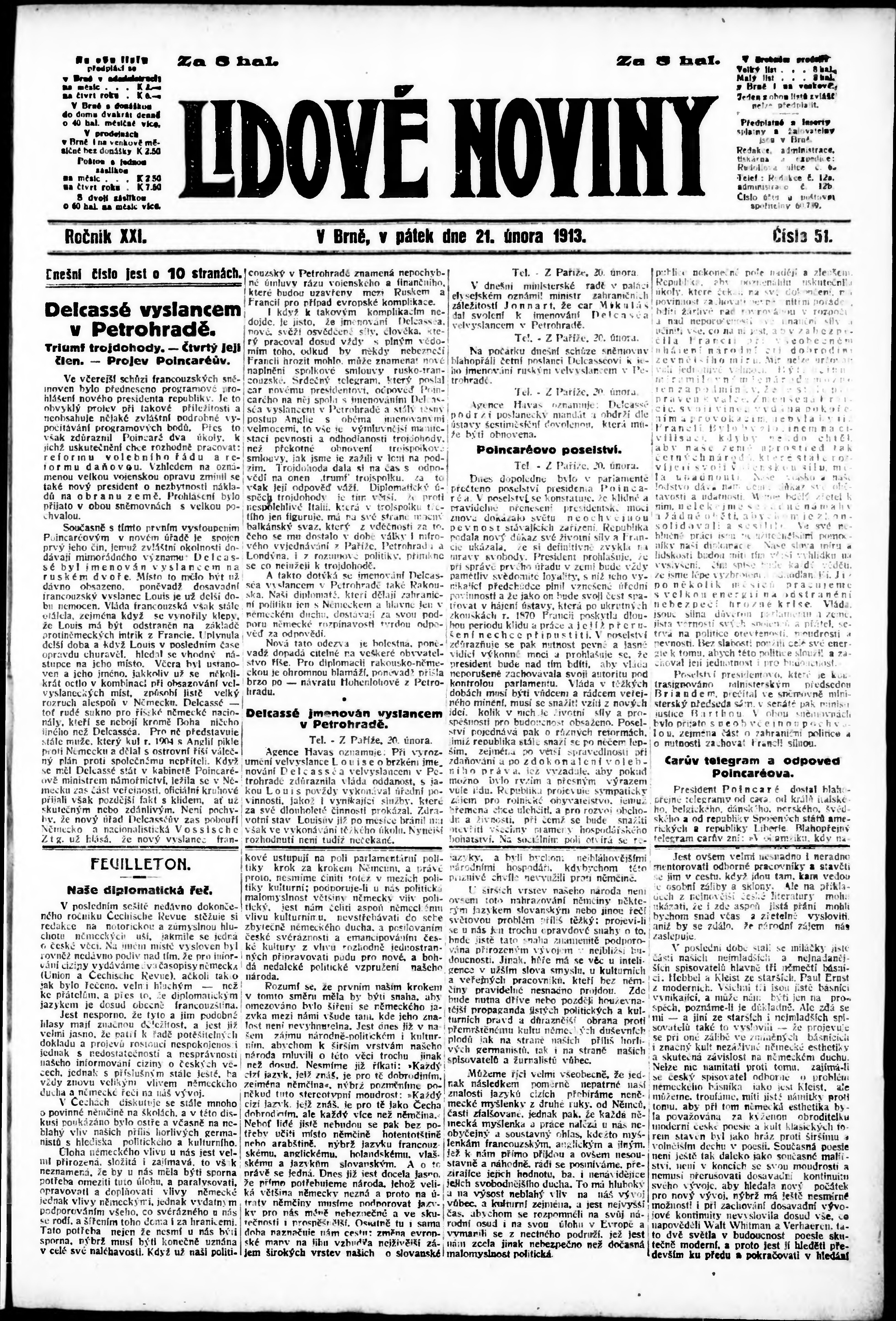 * Datum vydání výtisku: 21.2.1913 Číslo výtisku: 51