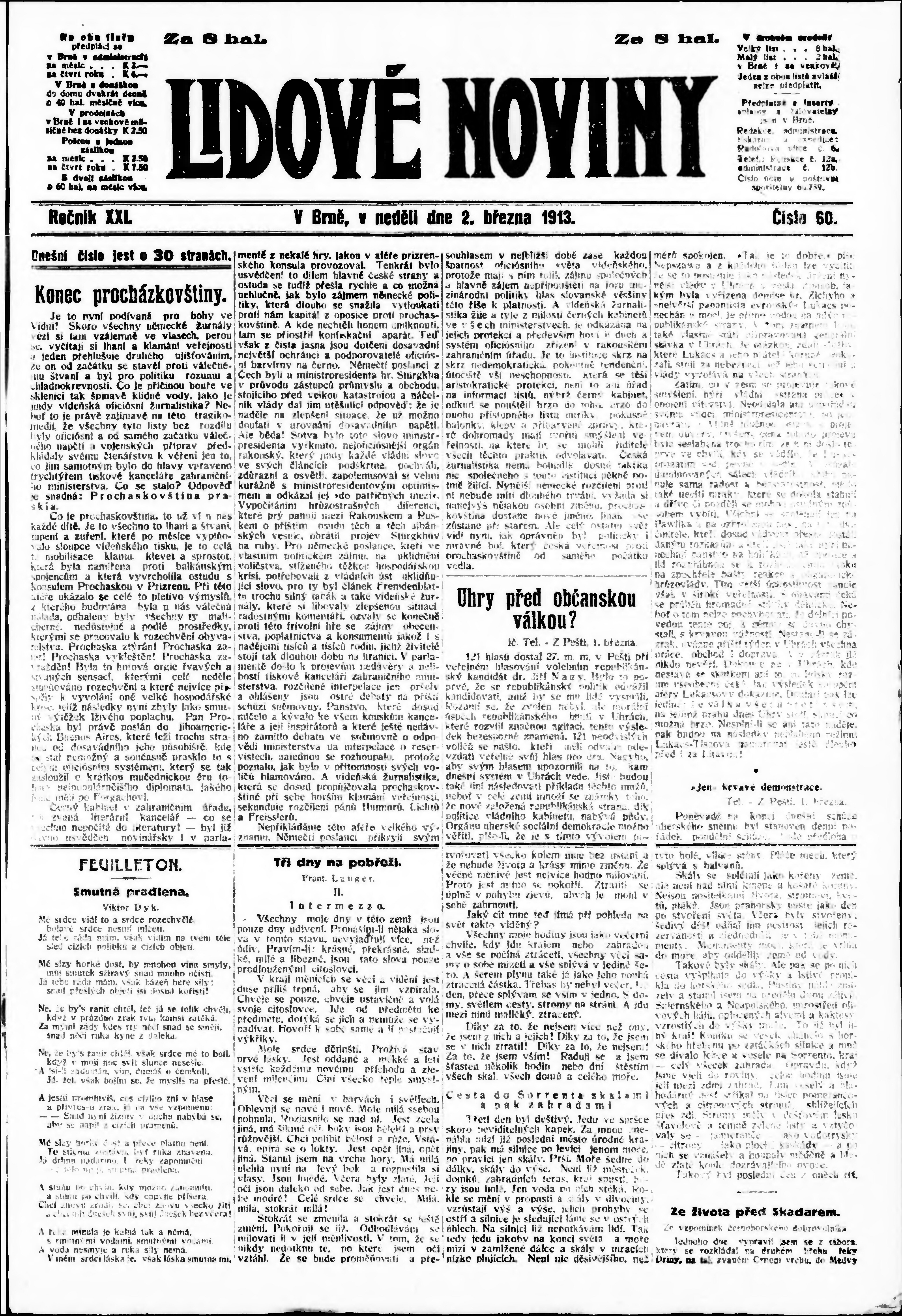 * Datum vydání výtisku: 2.3.1913 Číslo výtisku: 60