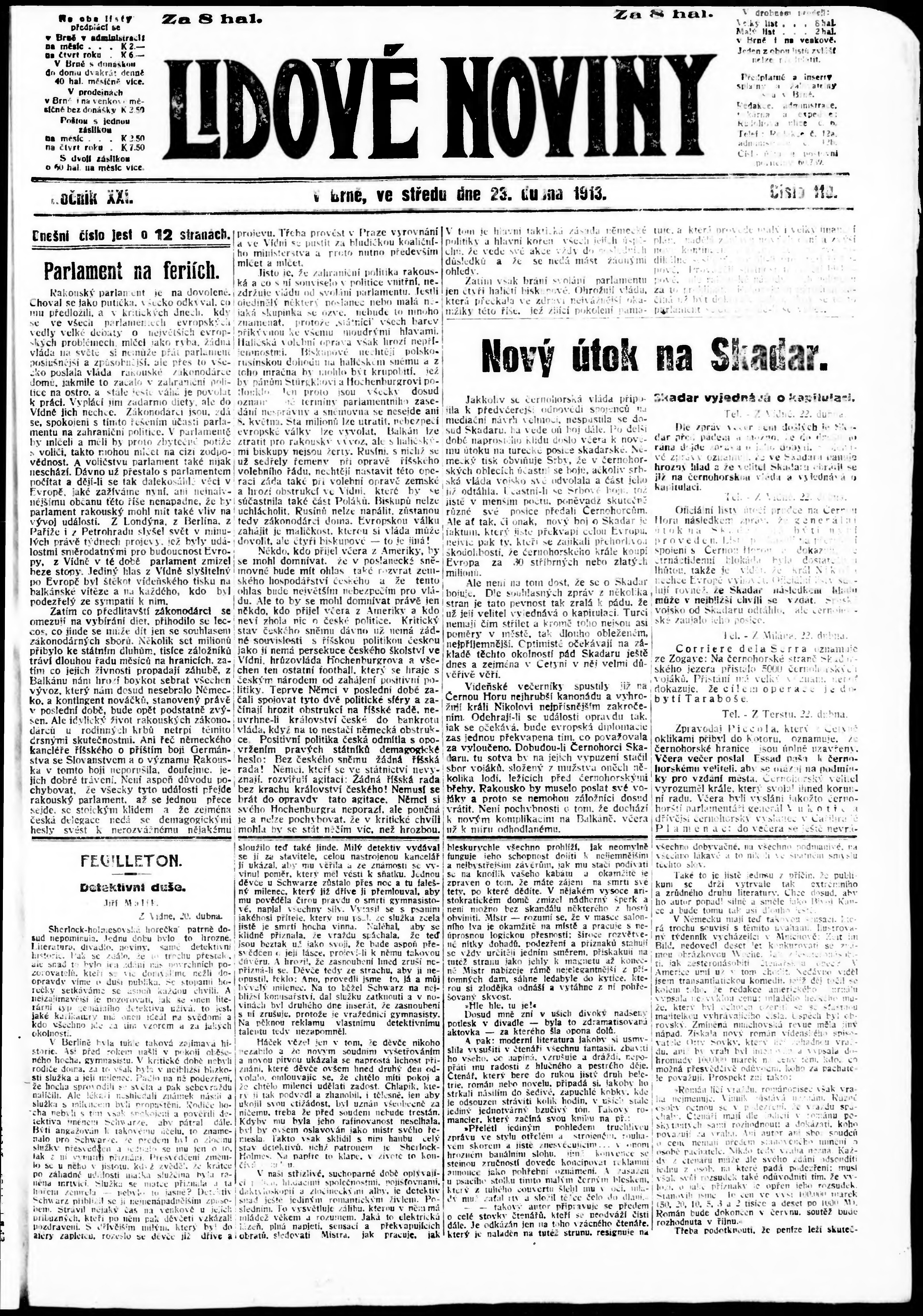 * Datum vydání výtisku: 23.4.1913 Číslo výtisku: 110