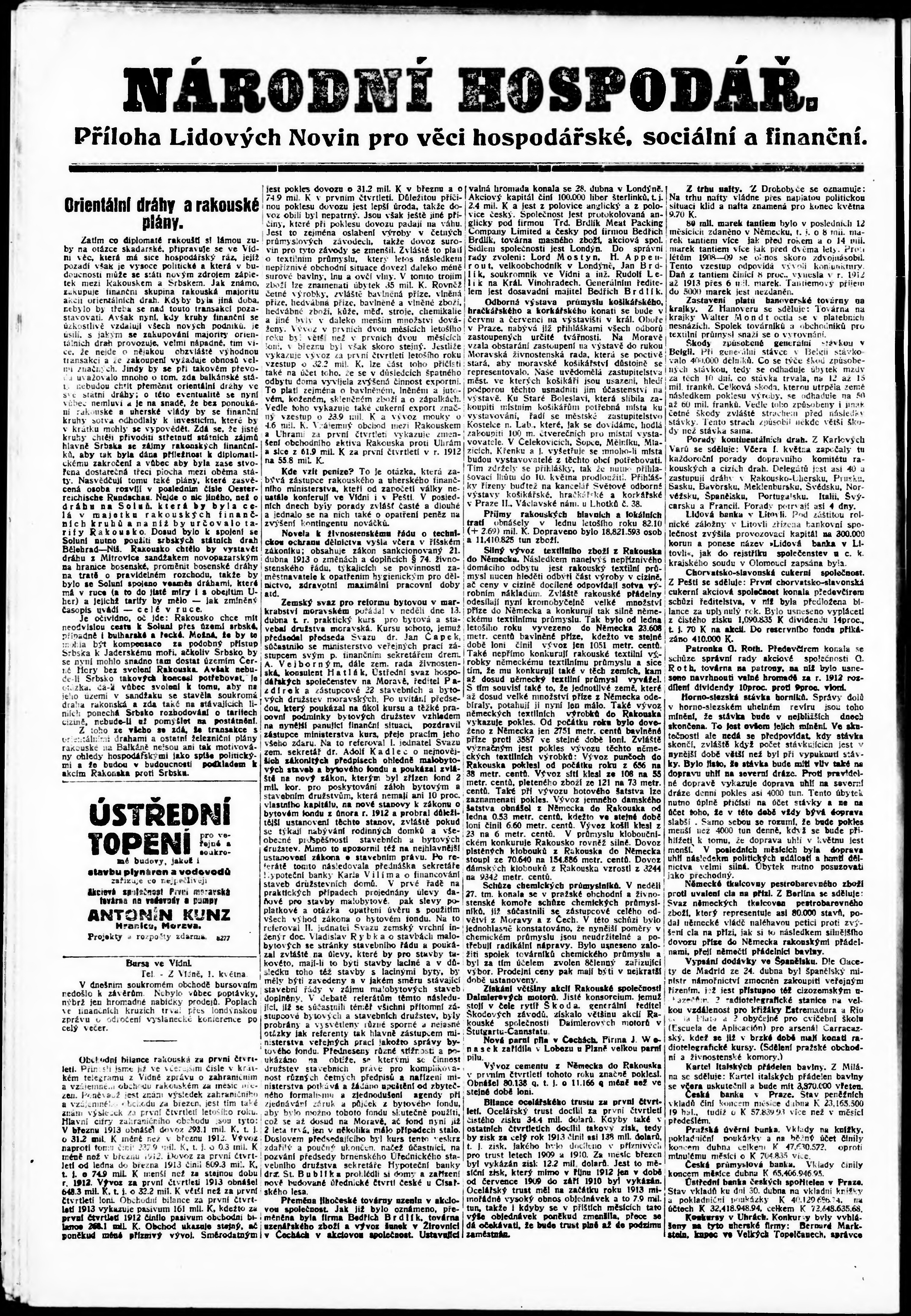* Datum vydání výtisku: 2.5.1913 Číslo výtisku: 119a Typ výtisku: příloha Poznámky k výtisku: po konfiskaci opravené vydání;