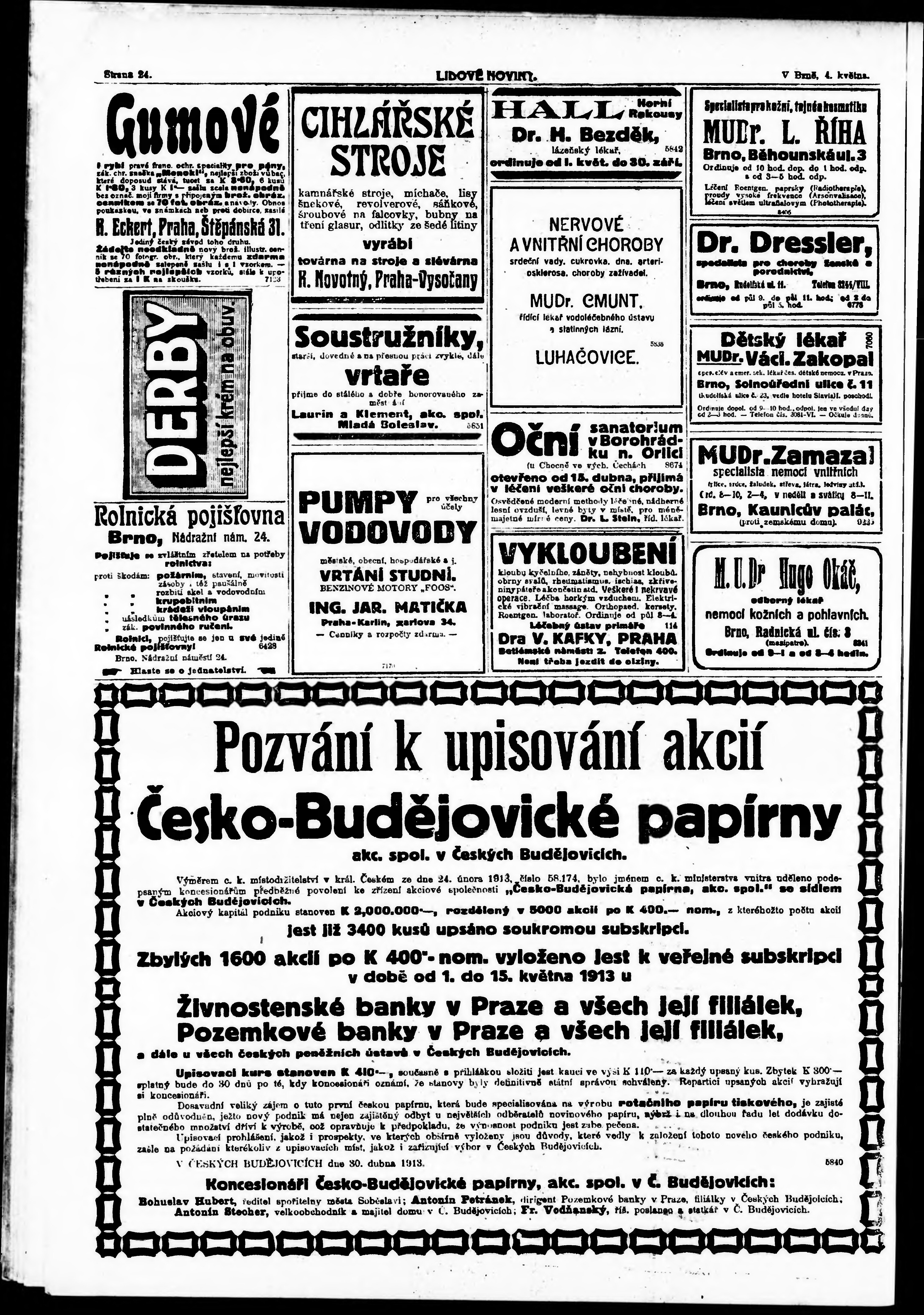 * Datum vydání výtisku: 4.5.1913 Číslo výtisku: 121 Typ výtisku: příloha