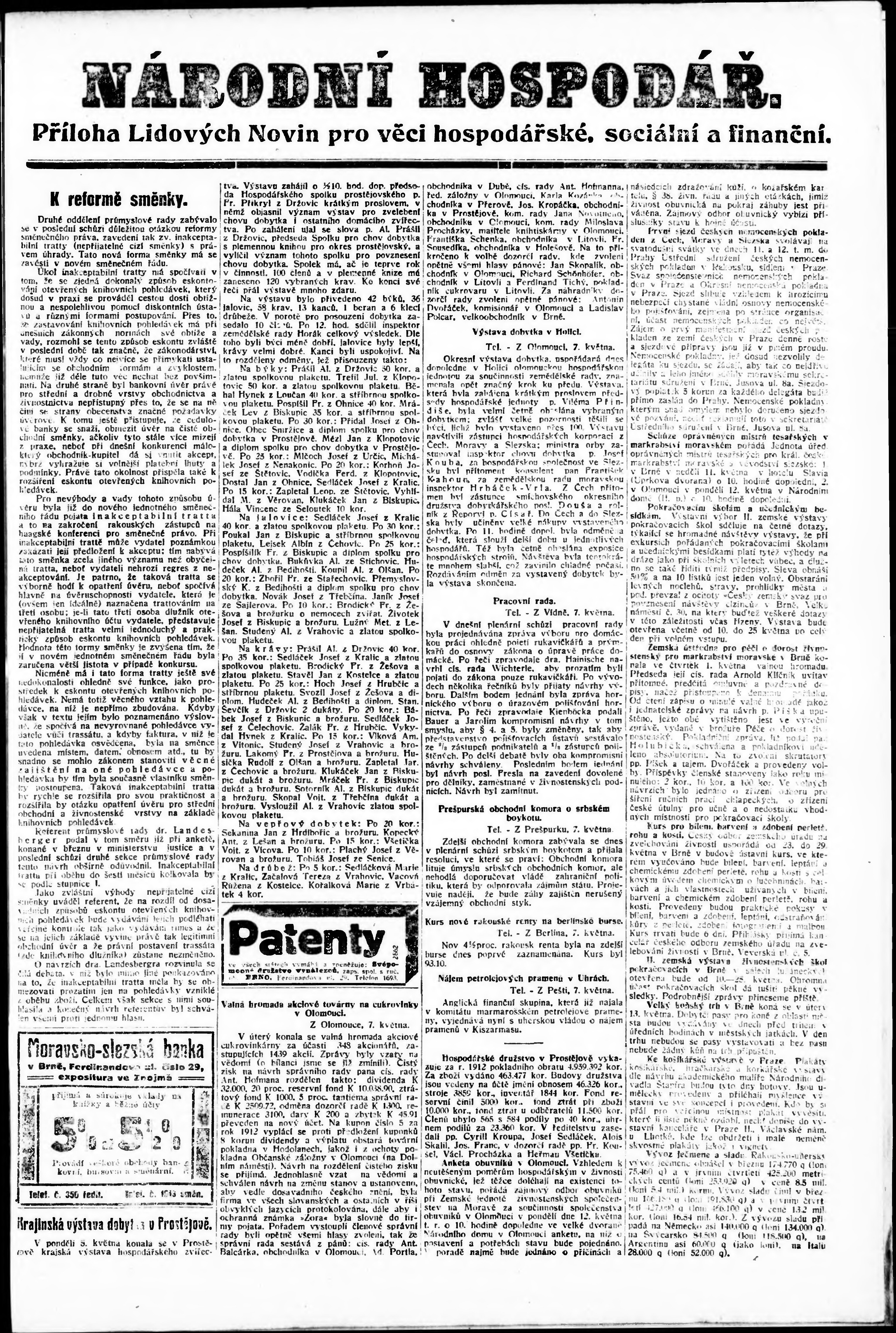 * Datum vydání výtisku: 8.5.1913 Číslo výtisku: 125a Typ výtisku: příloha Poznámky k výtisku: po konfiskaci opravené vydání;