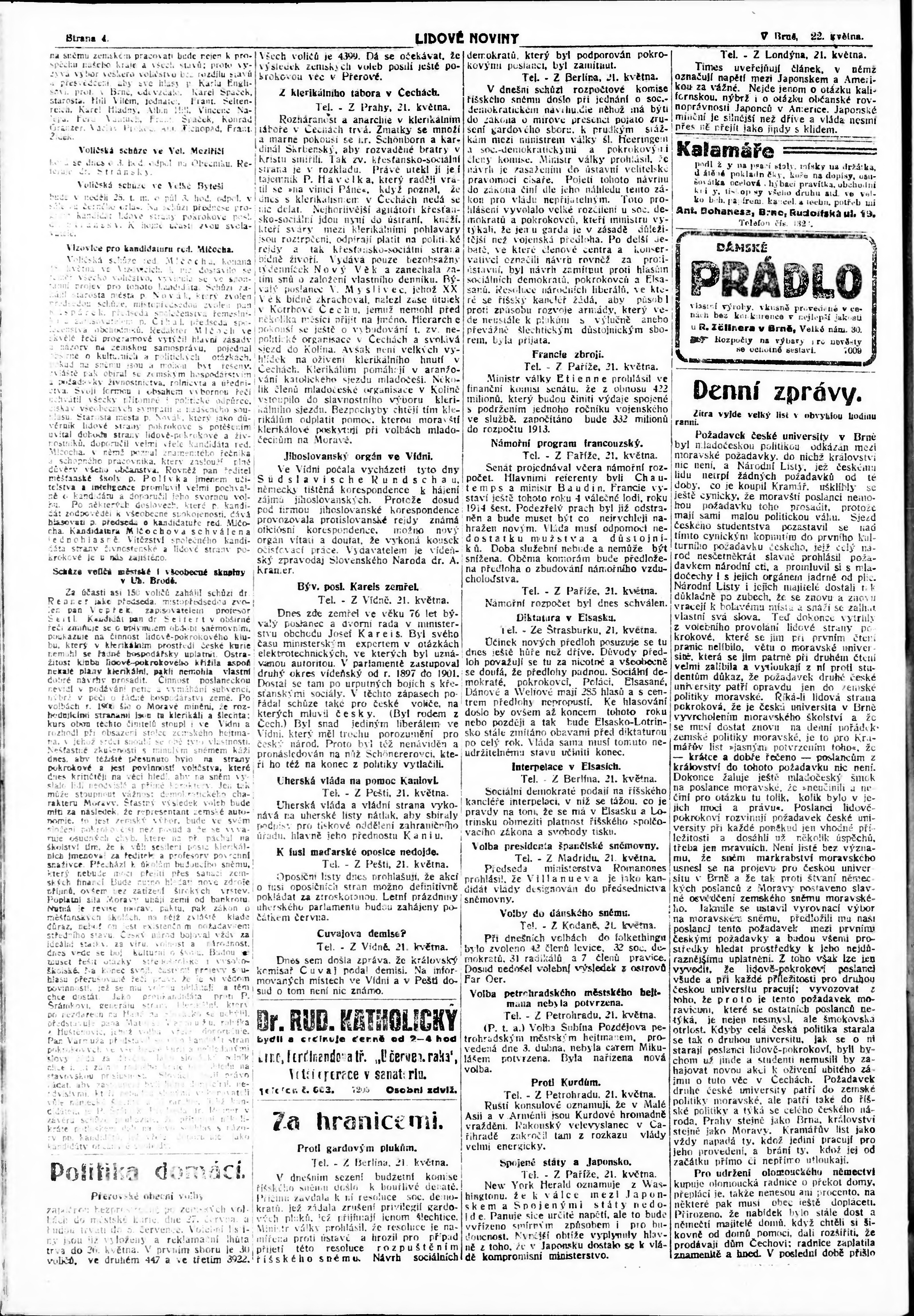 * Datum vydání výtisku: 22.5.1913 Číslo výtisku: 138